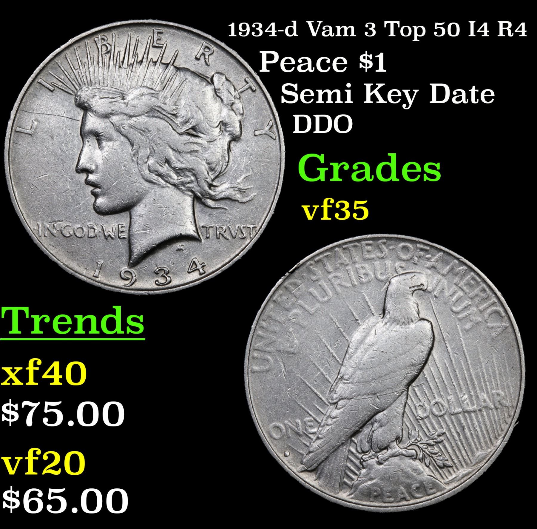 1934-d Vam 3 Top 50 I4 R4 Peace Dollar $1 Grades vf++.