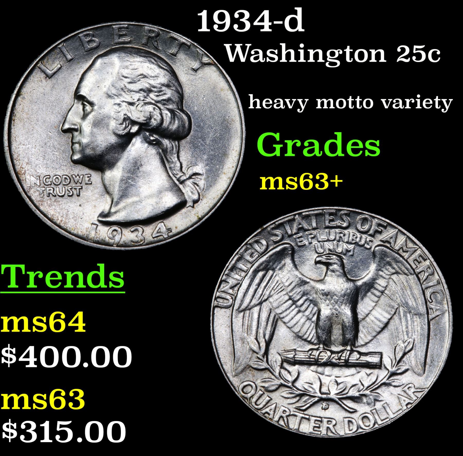 1934-d heavy motto variety . Washington Quarter 25c Grades Select+ Unc.