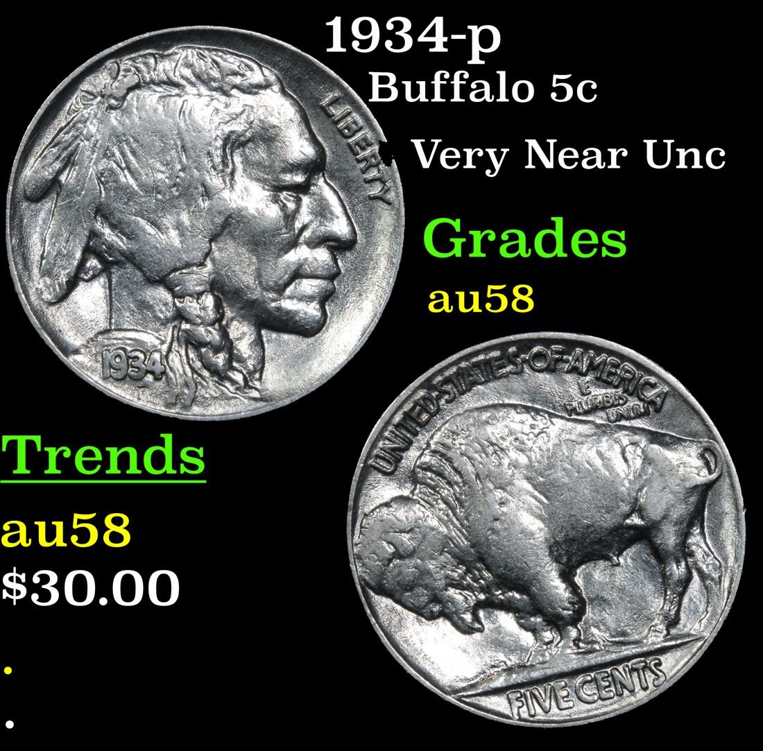 1934-p . Very Near Unc Buffalo Nickel 5c Grades Choice AU/BU Slider.