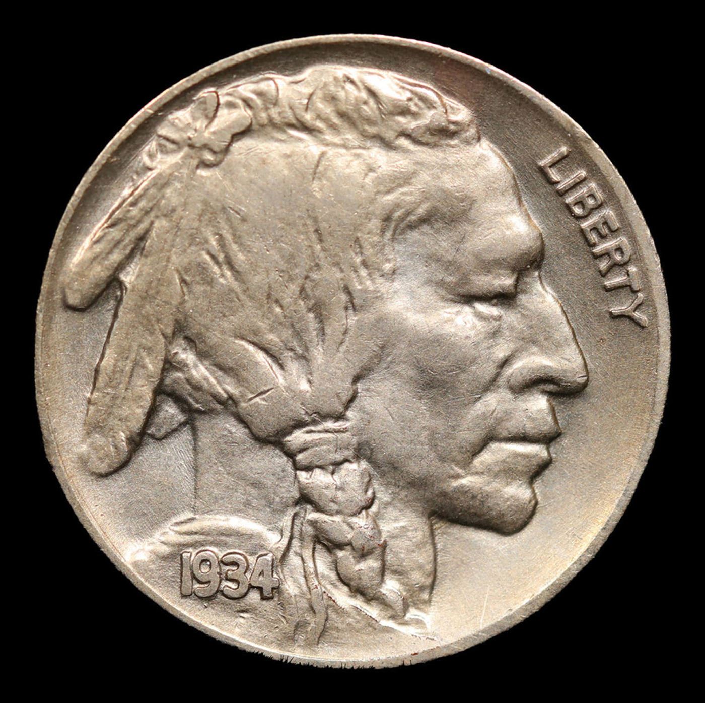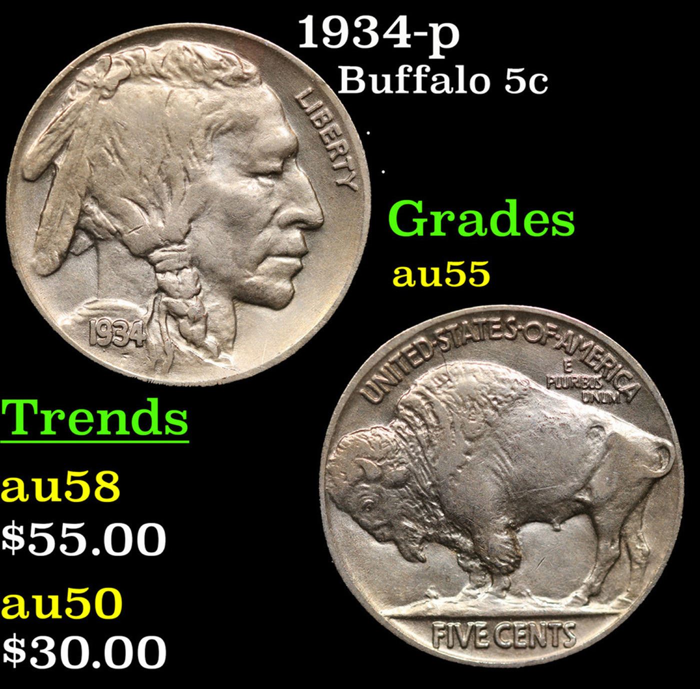 1934-p Buffalo Nickel 5c Grades Choice AU.