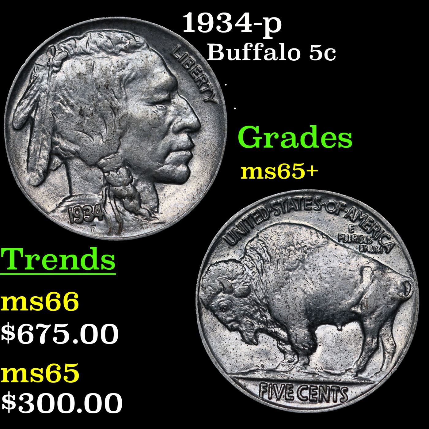 1934-p Buffalo Nickel 5c Grades GEM+ Unc.