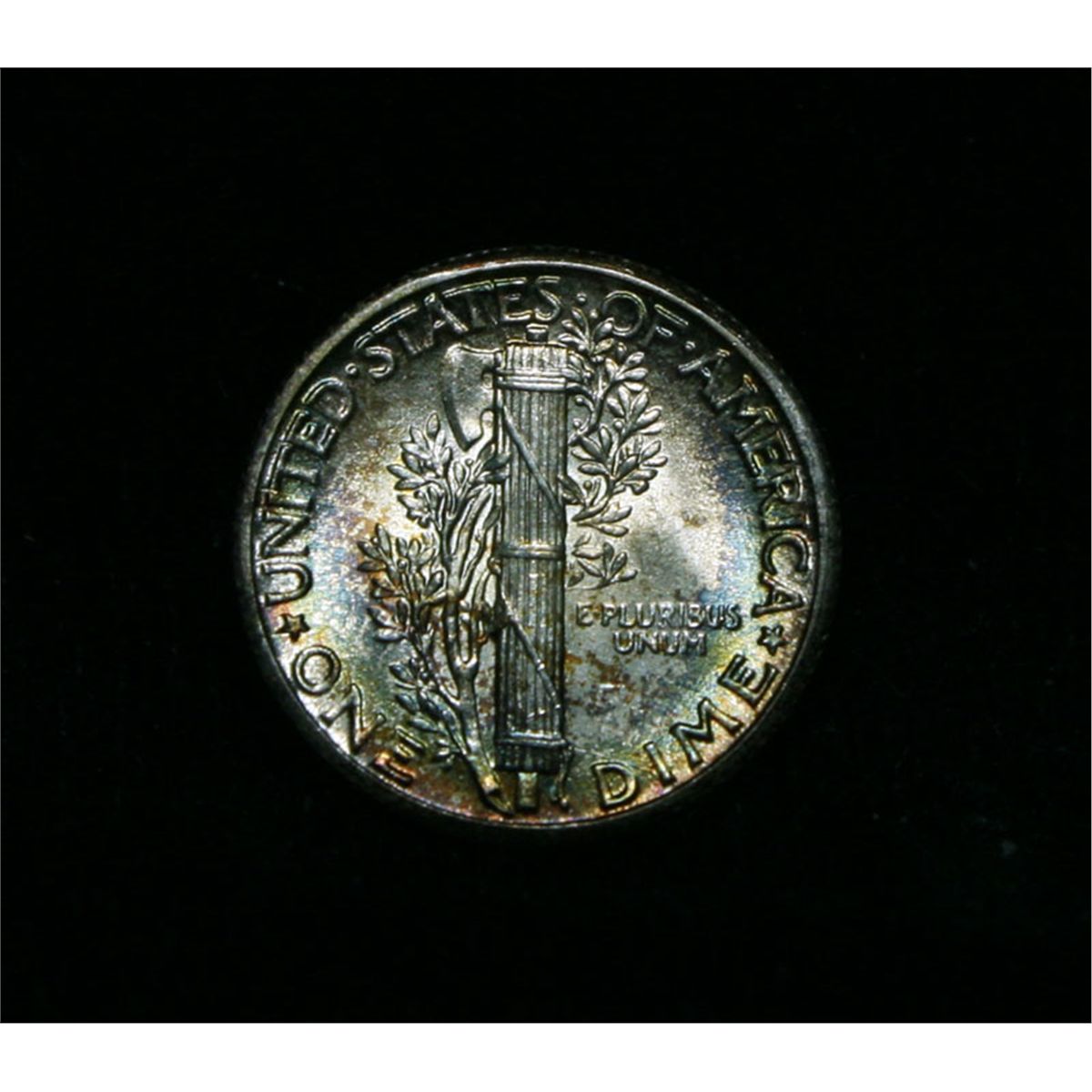 A Beautiful Full Split Band Mercury. Nice Luster, Great Strike. Nice Pleasing toning with Great Colors. PCGS's Price Guide lists ms65 FSB at $145 and NGC's Price Guide lists ms65 FSB at $116+. The Wholesale Greysheet lists ms65 FSB at $100. Estimated Value $110