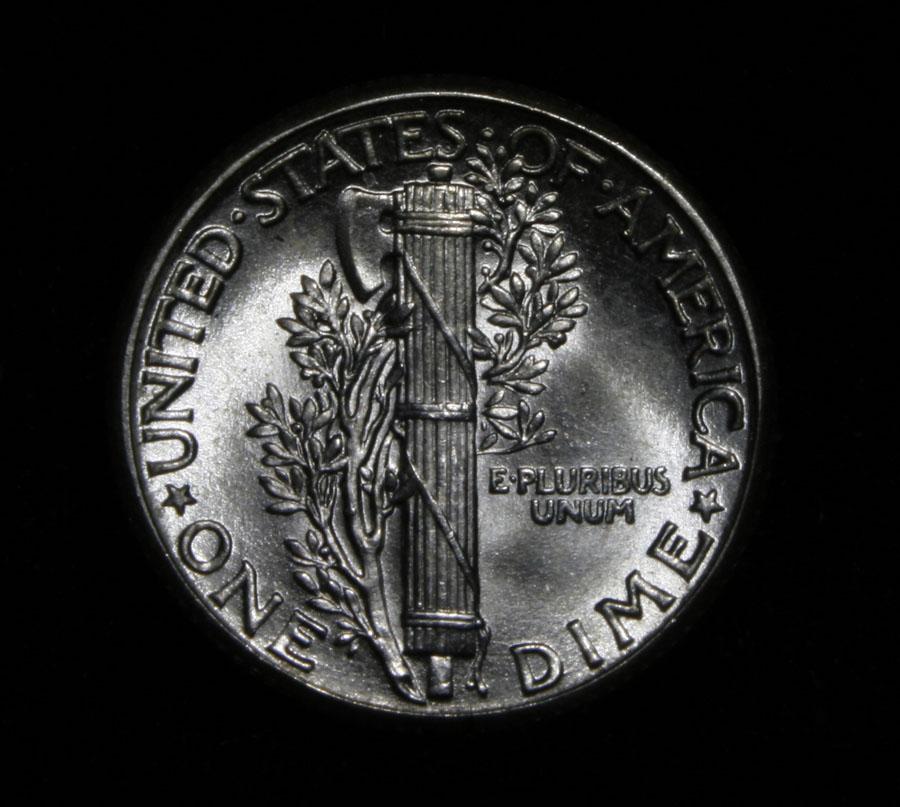 A Beautiful Full Split Band Mercury. Great Luster, Great Strike. I received about 10 stunning Mercurys from one consignee each is more beautiful than the next. This is one of the 10, all 10 are up today. Coin World's Coin Values lists ms65 FSB as $165 and The Wholesale Greysheet lists ms65 FSB at $100. Estimated Value $125