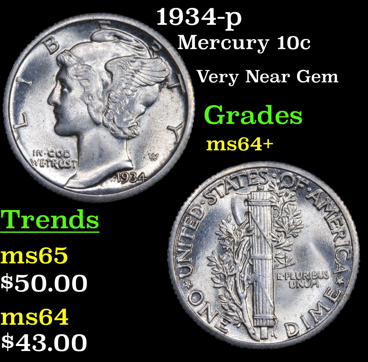 1934-p Mercury Dime 10c Grades Choice+ Unc.