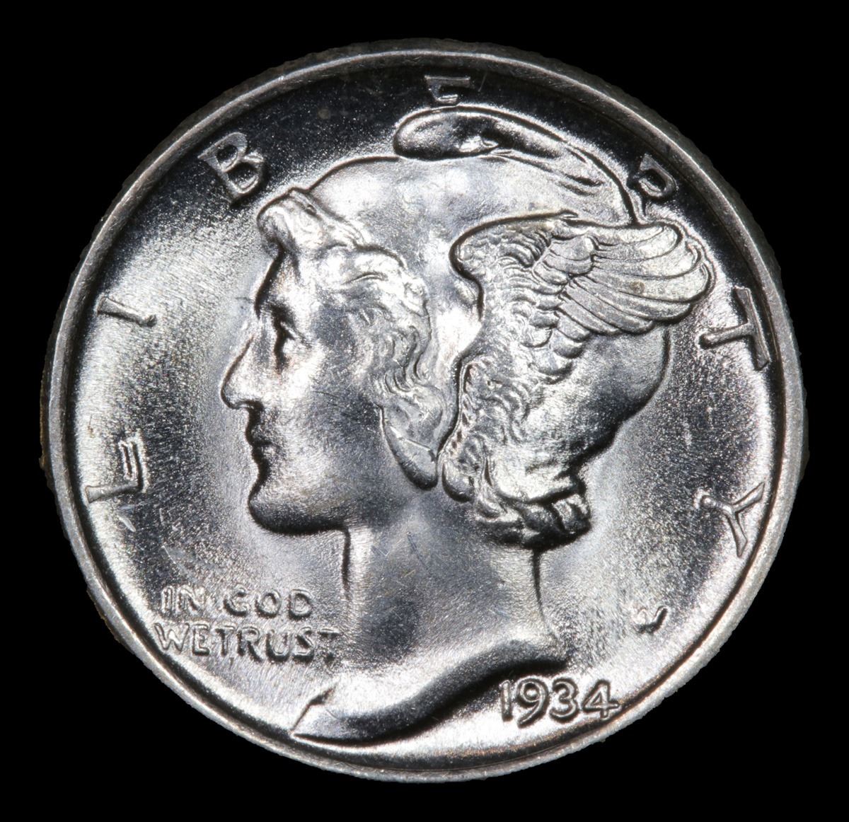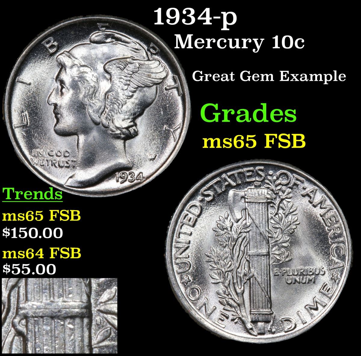 1934-p . Great Gem Example Mercury Dime 10c Grades GEM FSB.