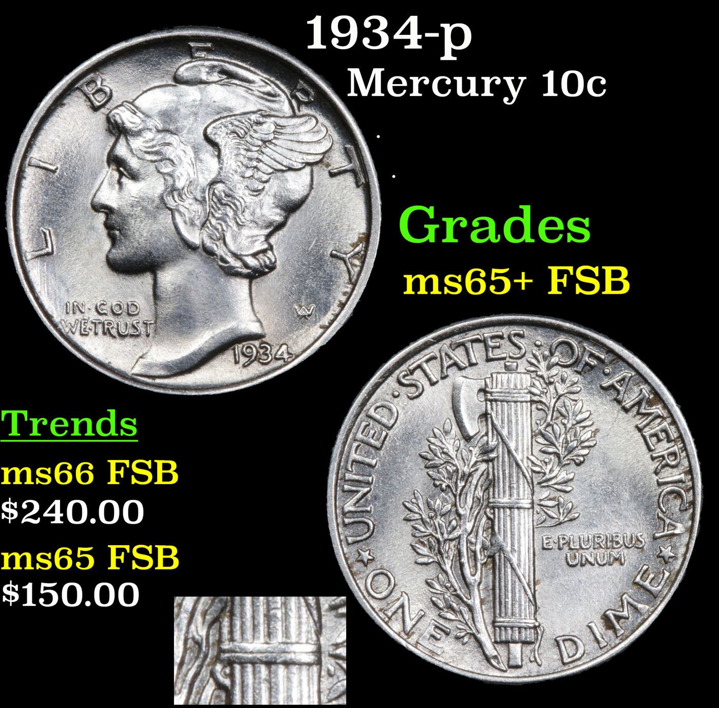 1934-p Mercury Dime 10c Grades GEM+ FSB.