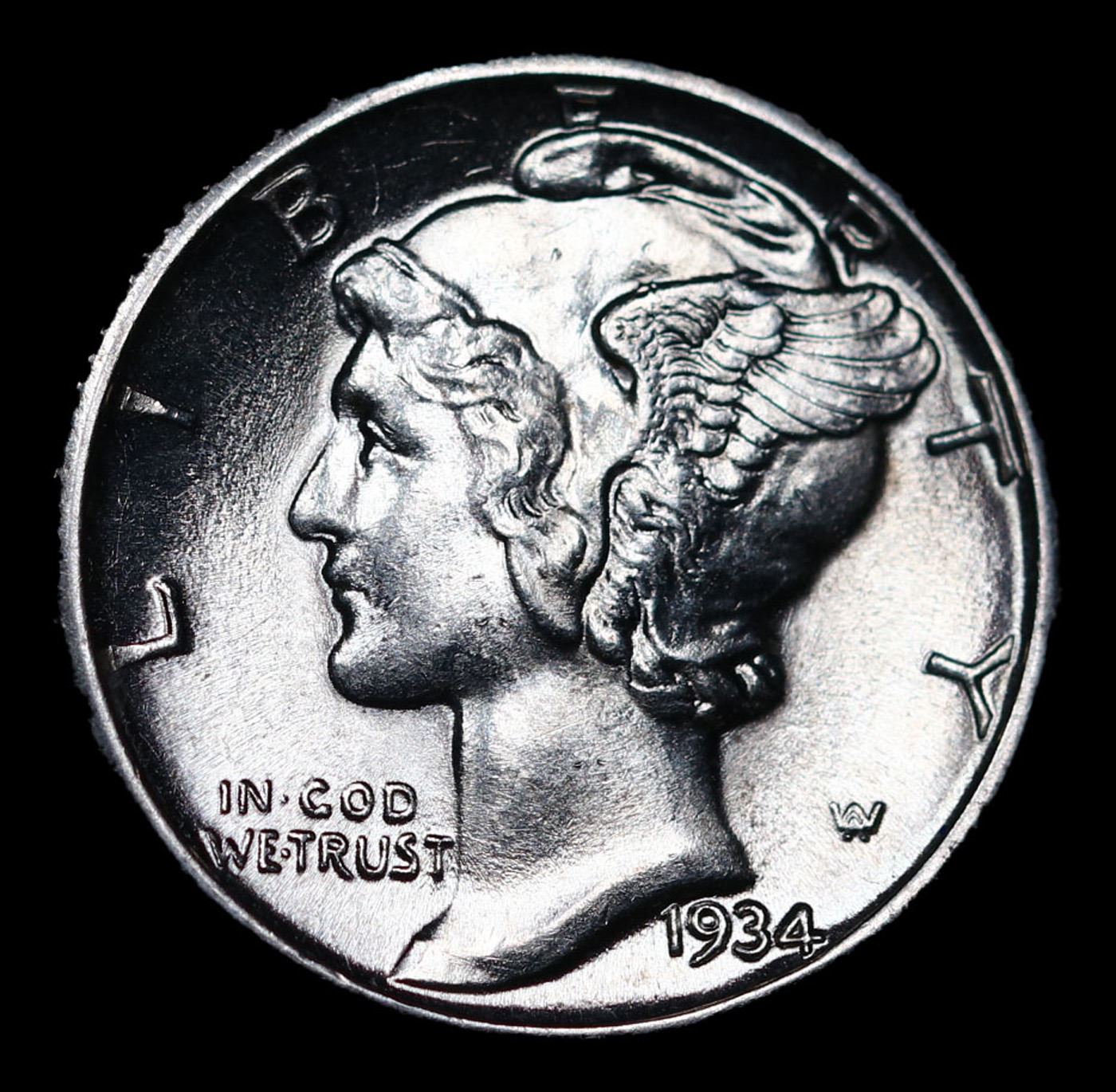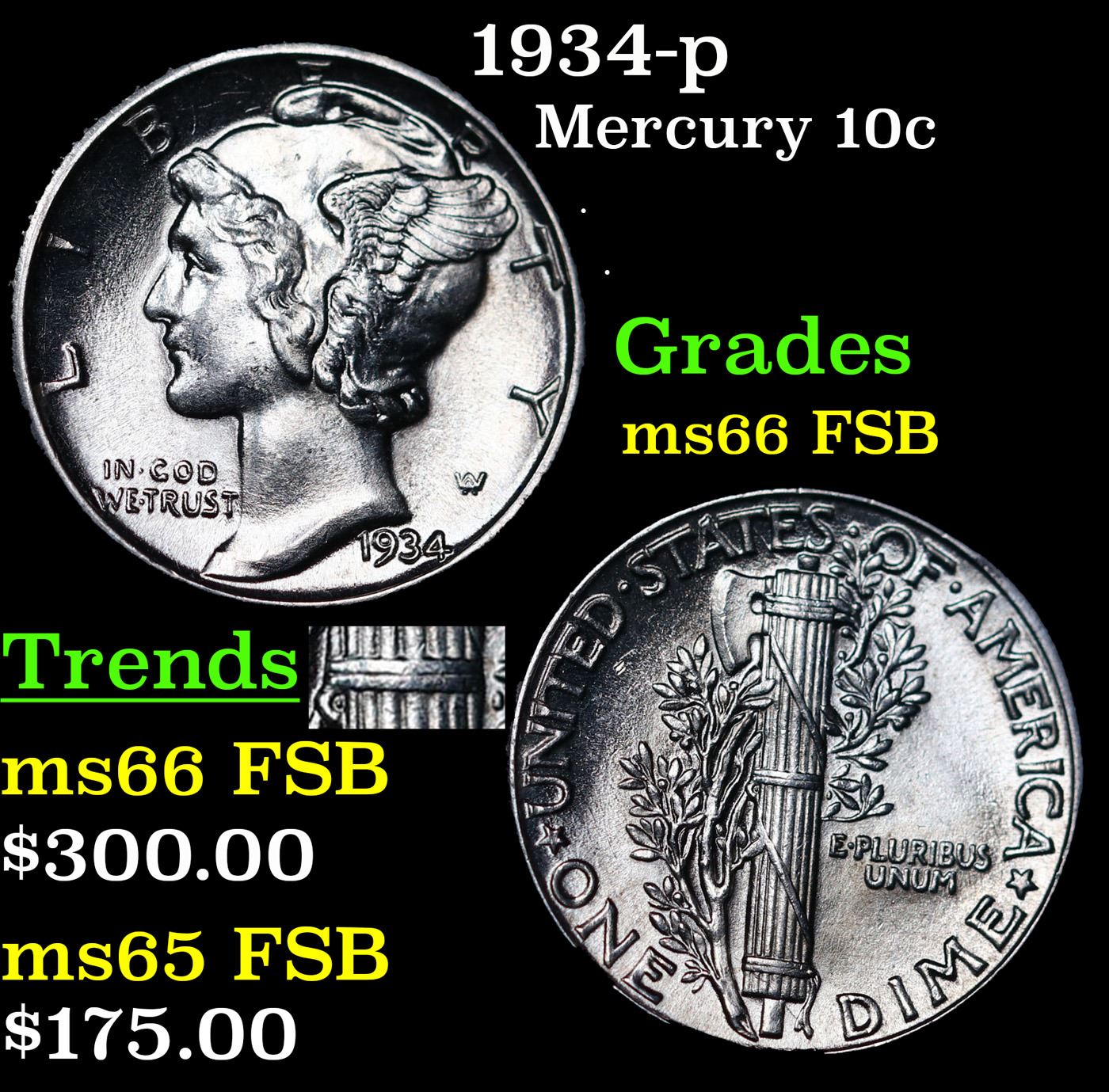 1934-p Mercury Dime 10c Grades GEM+ FSB.