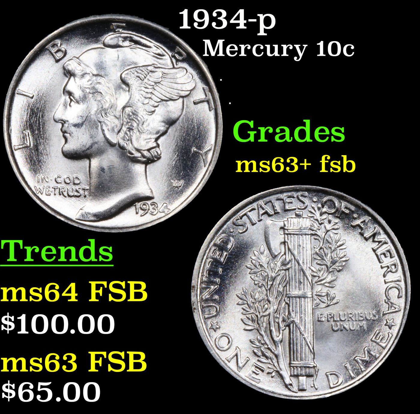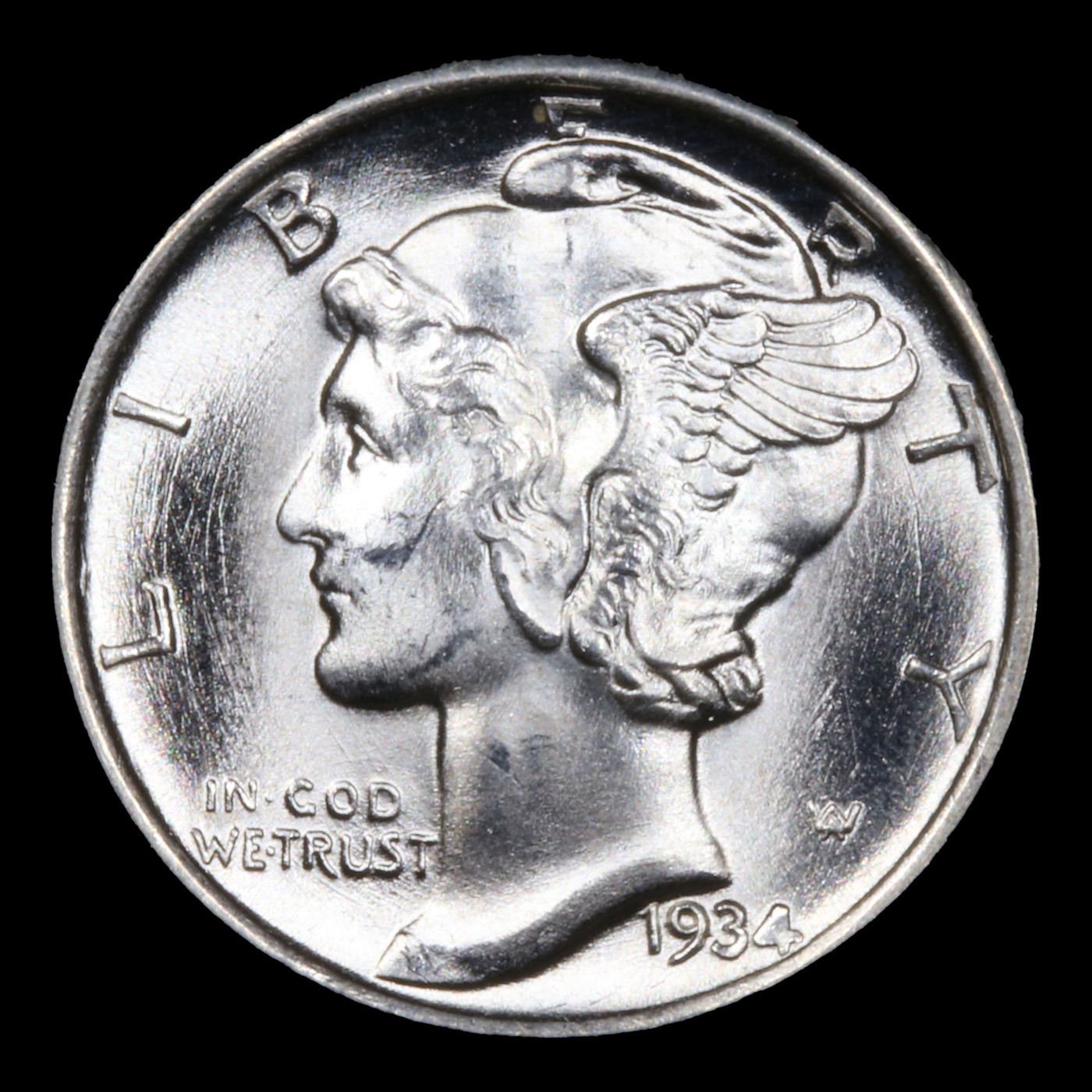 1934-p Mercury Dime 10c Grades Select Unc+ FSB.