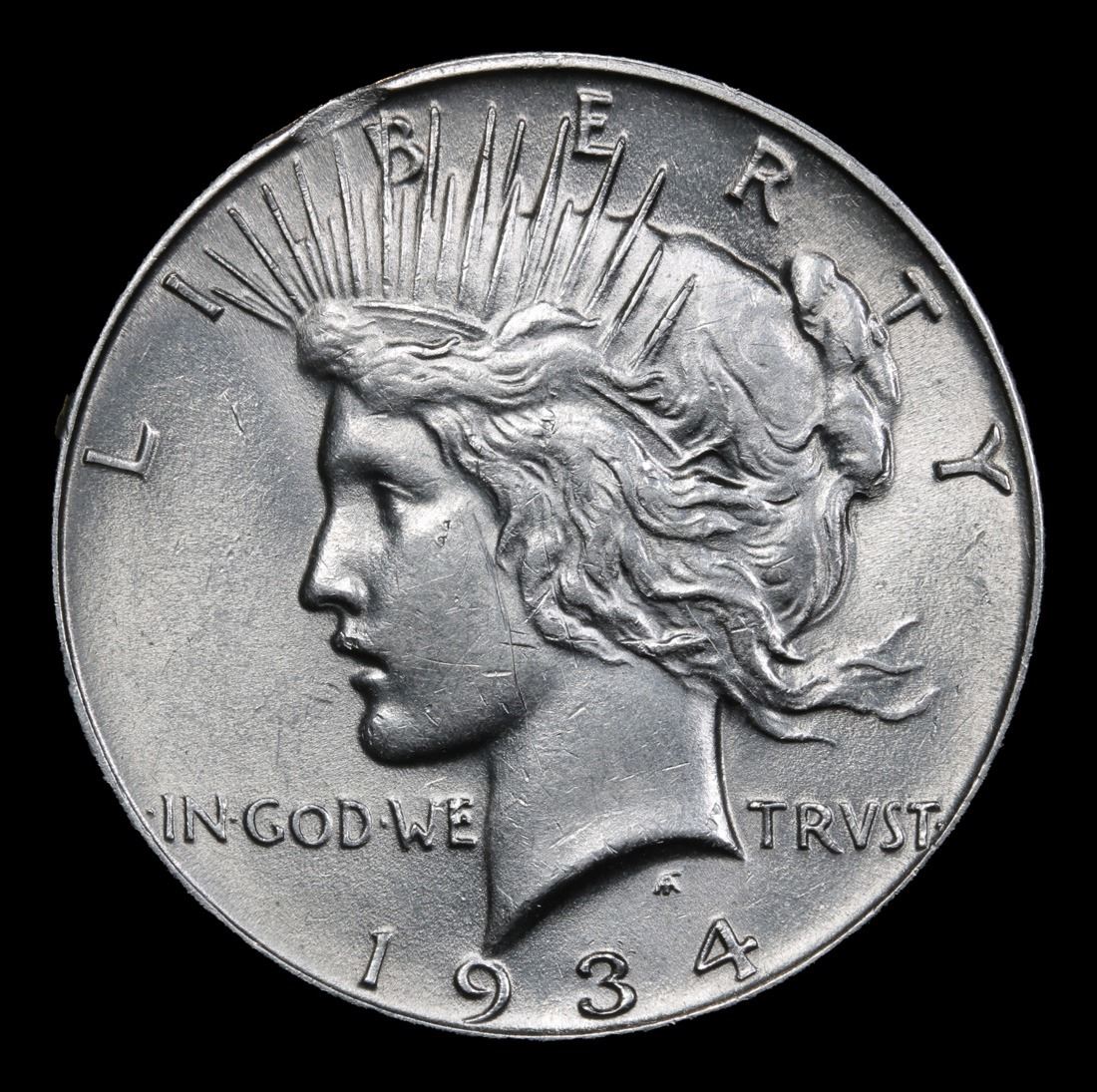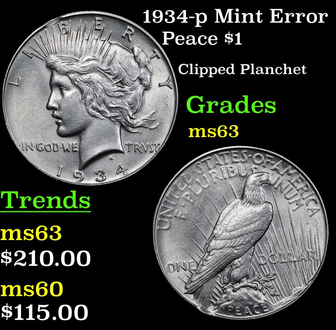 1934-p Mint Error . Clipped Planchet Peace Dollar $1 Grades Select Unc.