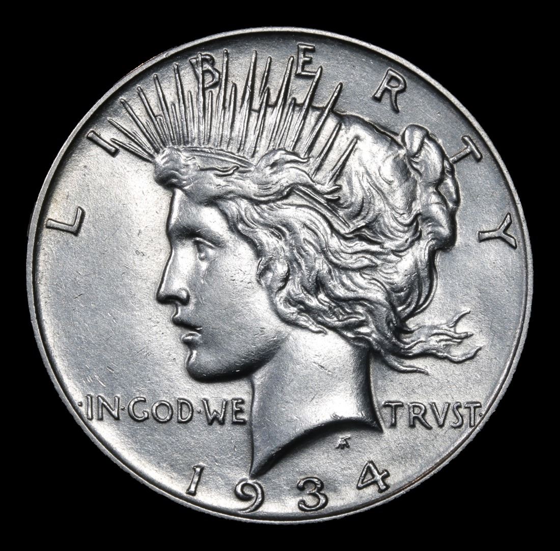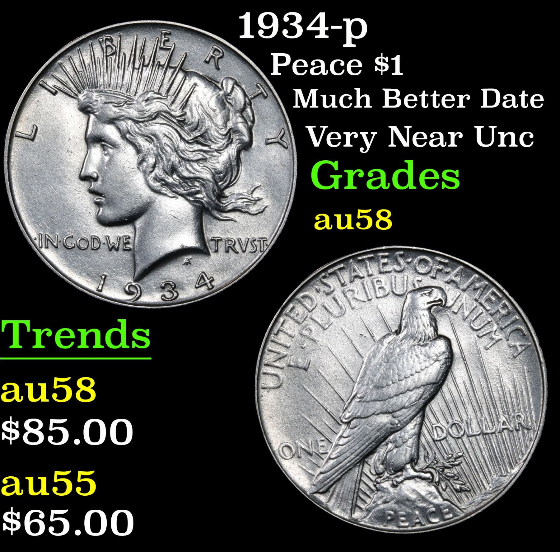 1934-p Much Better Date Very Near Unc Peace Dollar $1 Grades Choice AU/BU Slider.