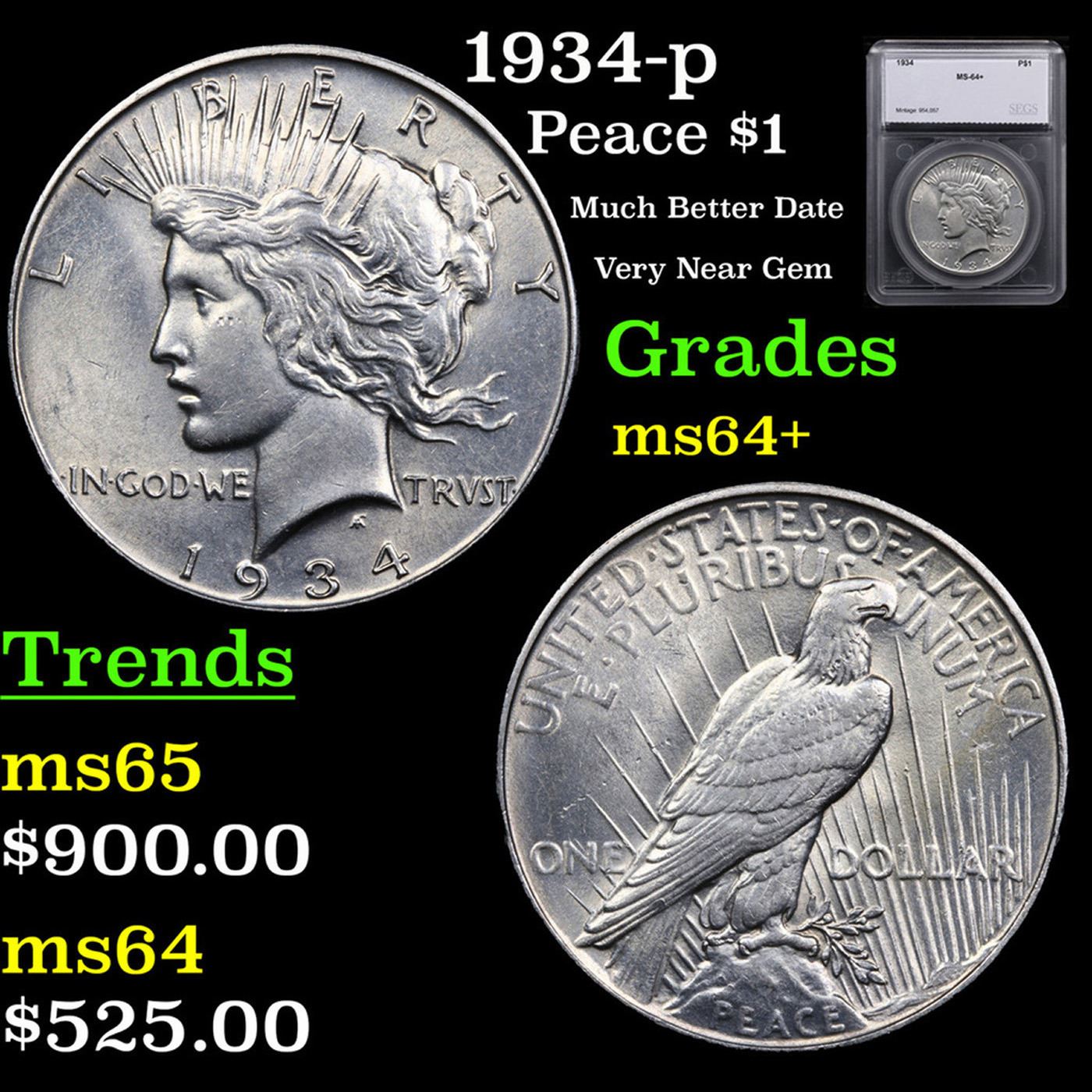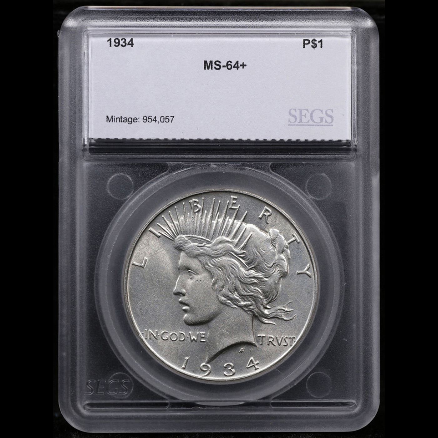 1934-p Peace Dollar $1 Graded ms64+ By SEGS.