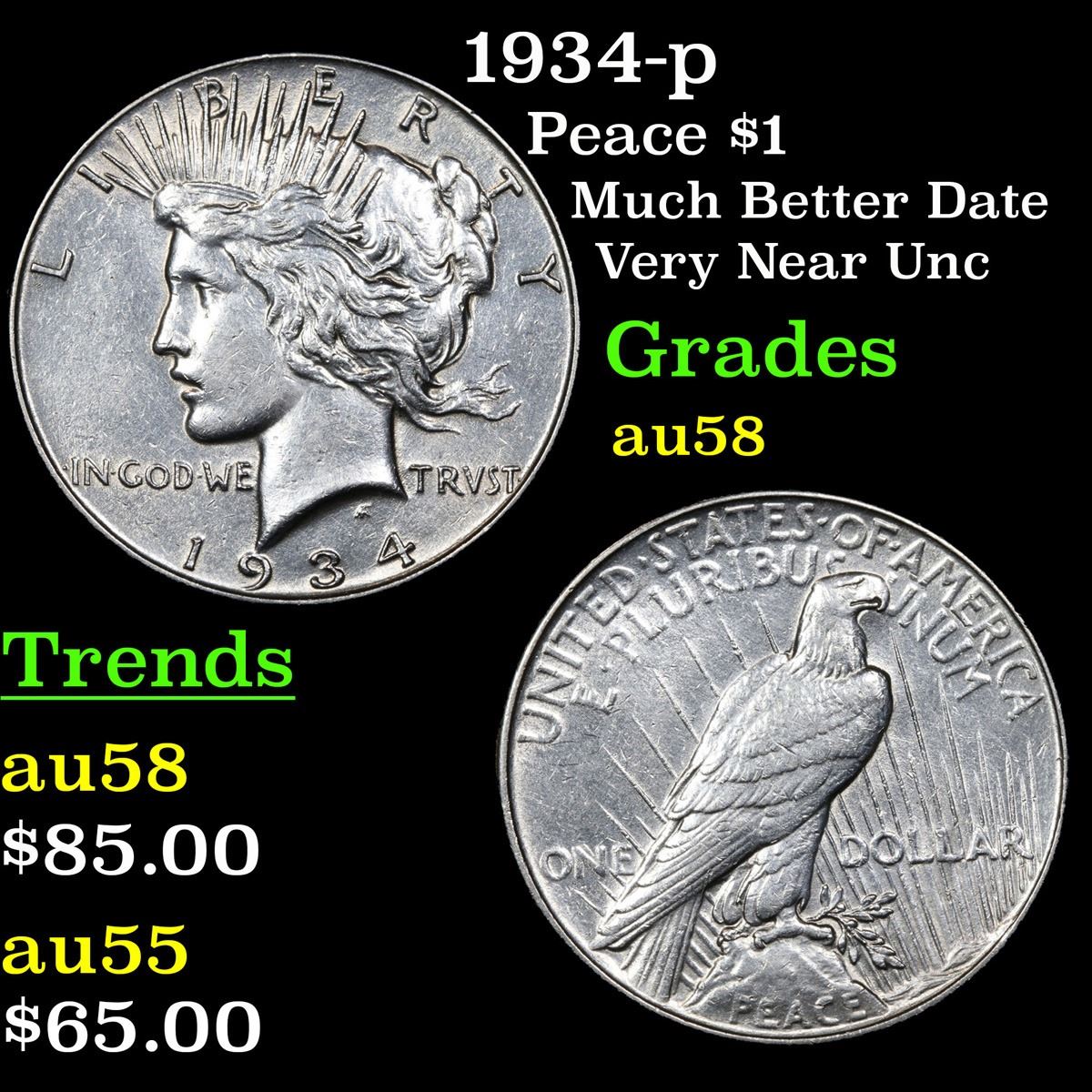 1934-p Much Better Date Very Near Unc Peace Dollar $1 Grades Choice AU/BU Slider.