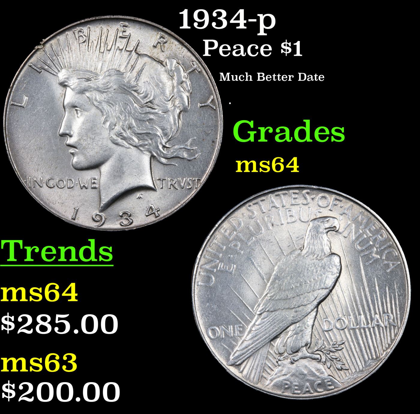 1934-p Peace Dollar $1 Grades Choice Unc.