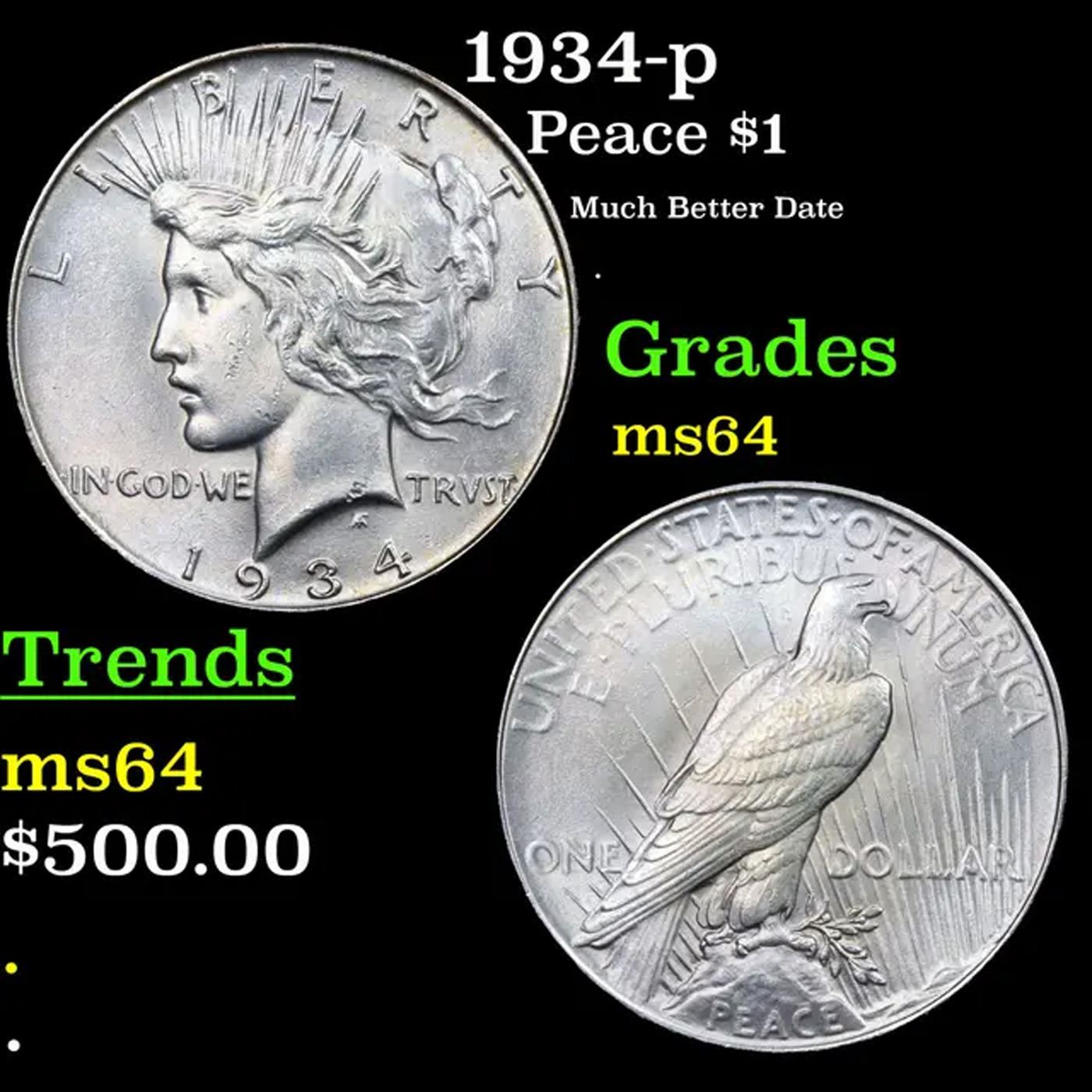 1934-p Peace Dollar $1 Grades Choice Unc.