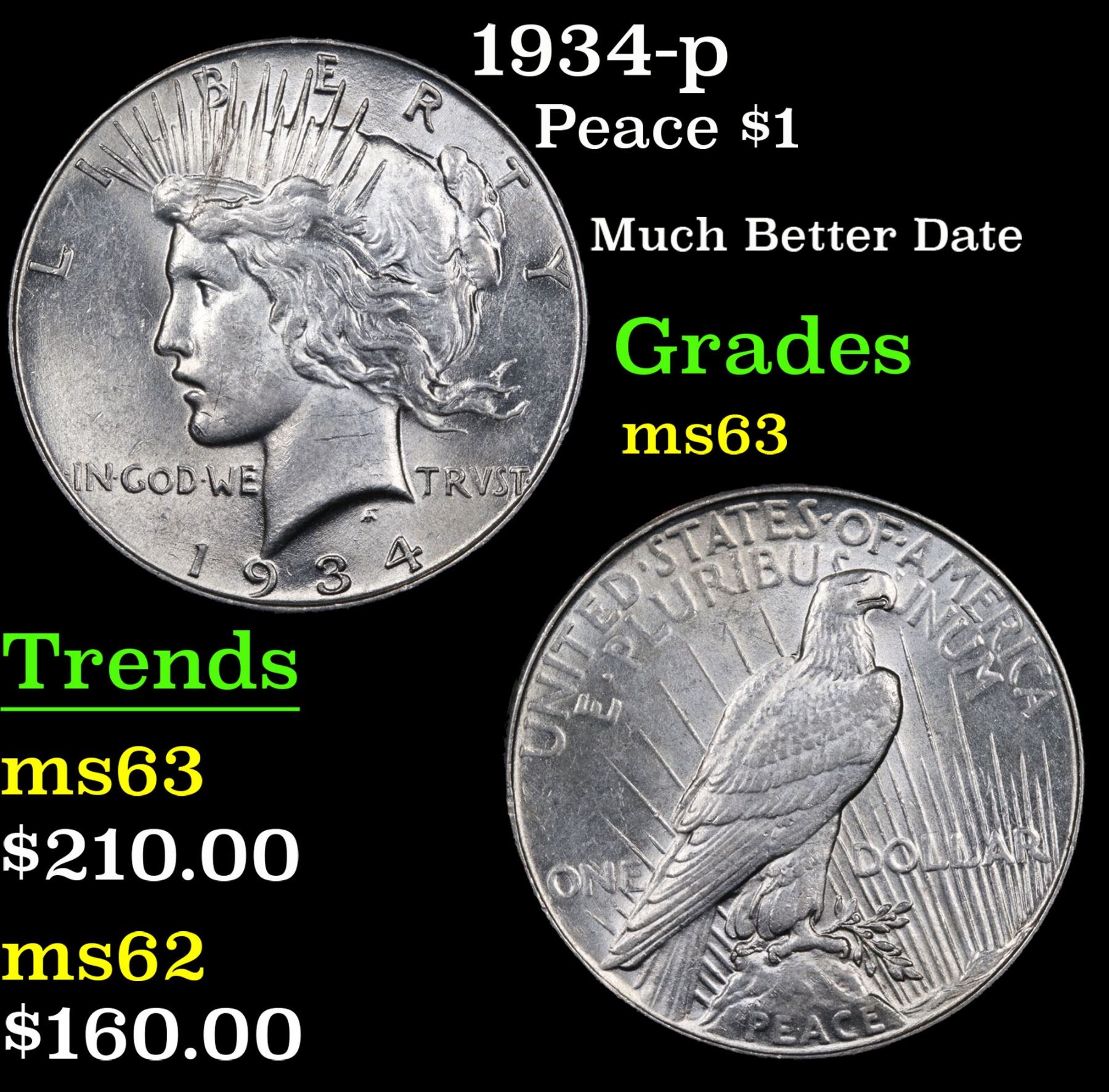 1934-p Much Better Date . Peace Dollar $1 Grades Select Unc.