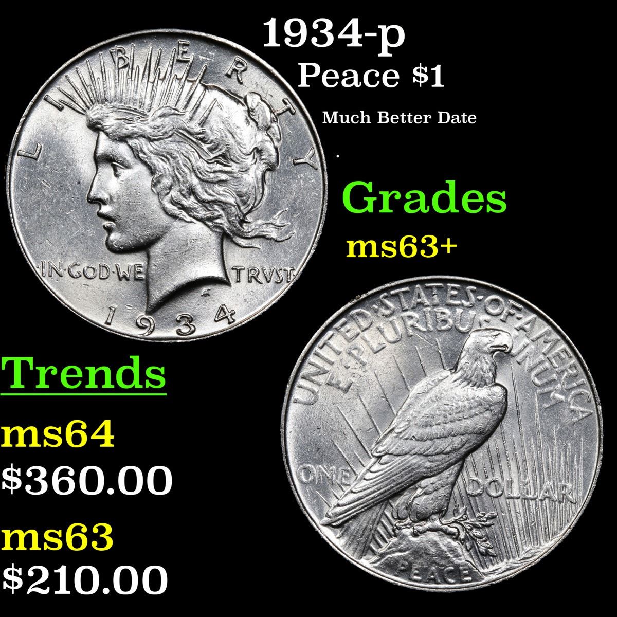 1934-p Much Better Date . Peace Dollar $1 Grades Select+ Unc.