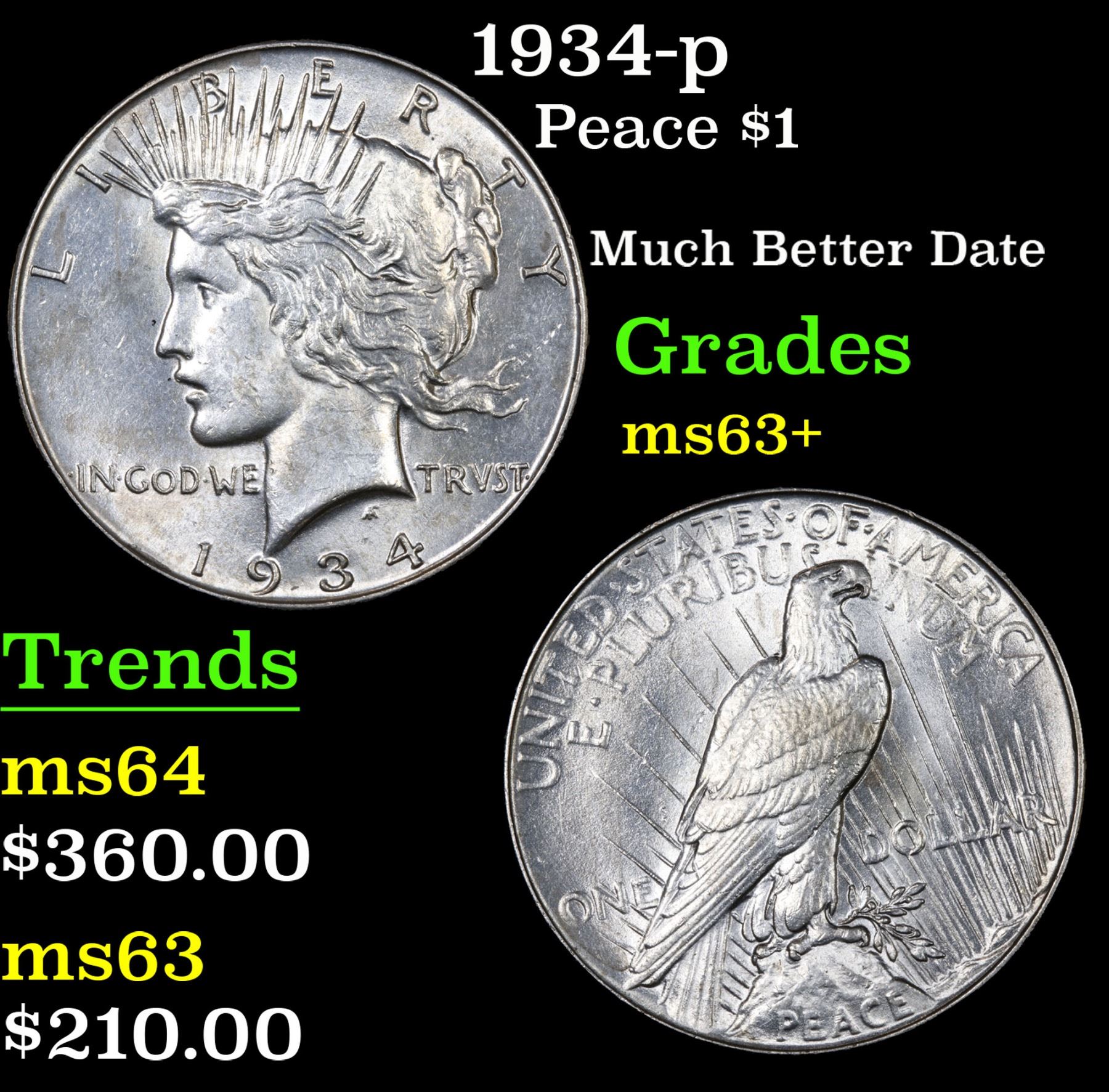 1934-p Much Better Date . Peace Dollar $1 Grades Select+ Unc.