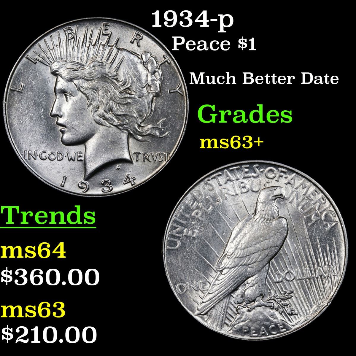 1934-p Much Better Date . Peace Dollar $1 Grades Select+ Unc.