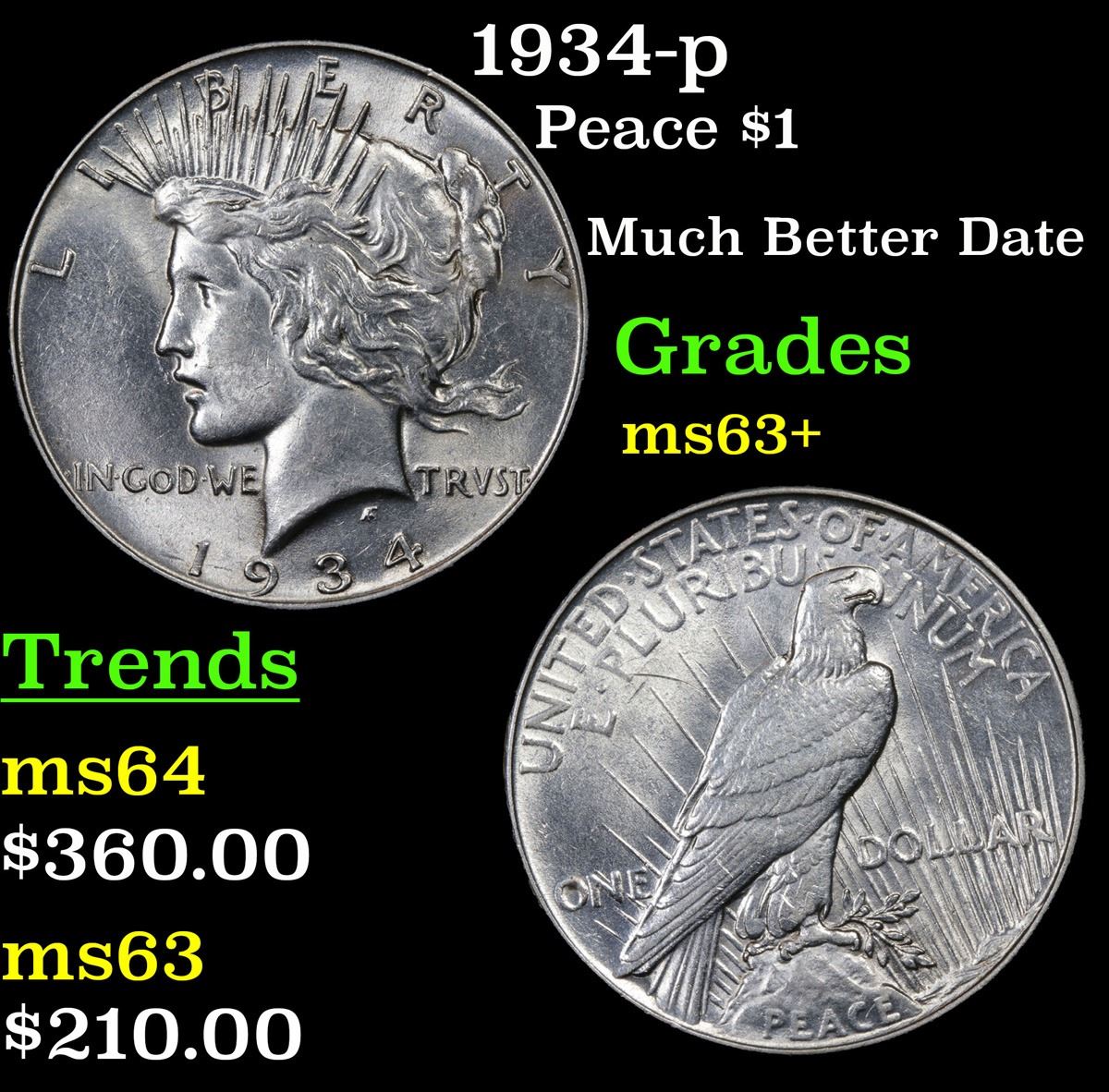 1934-p Peace Dollar $1 Grades Select+ Unc.