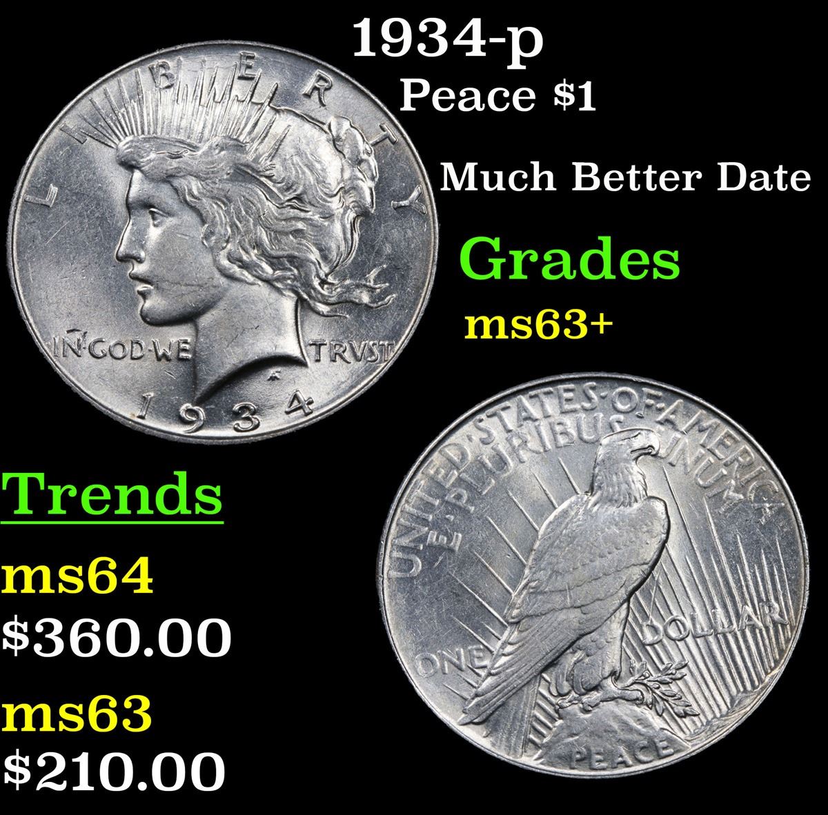 1934-p Peace Dollar $1 Grades Select+ Unc.