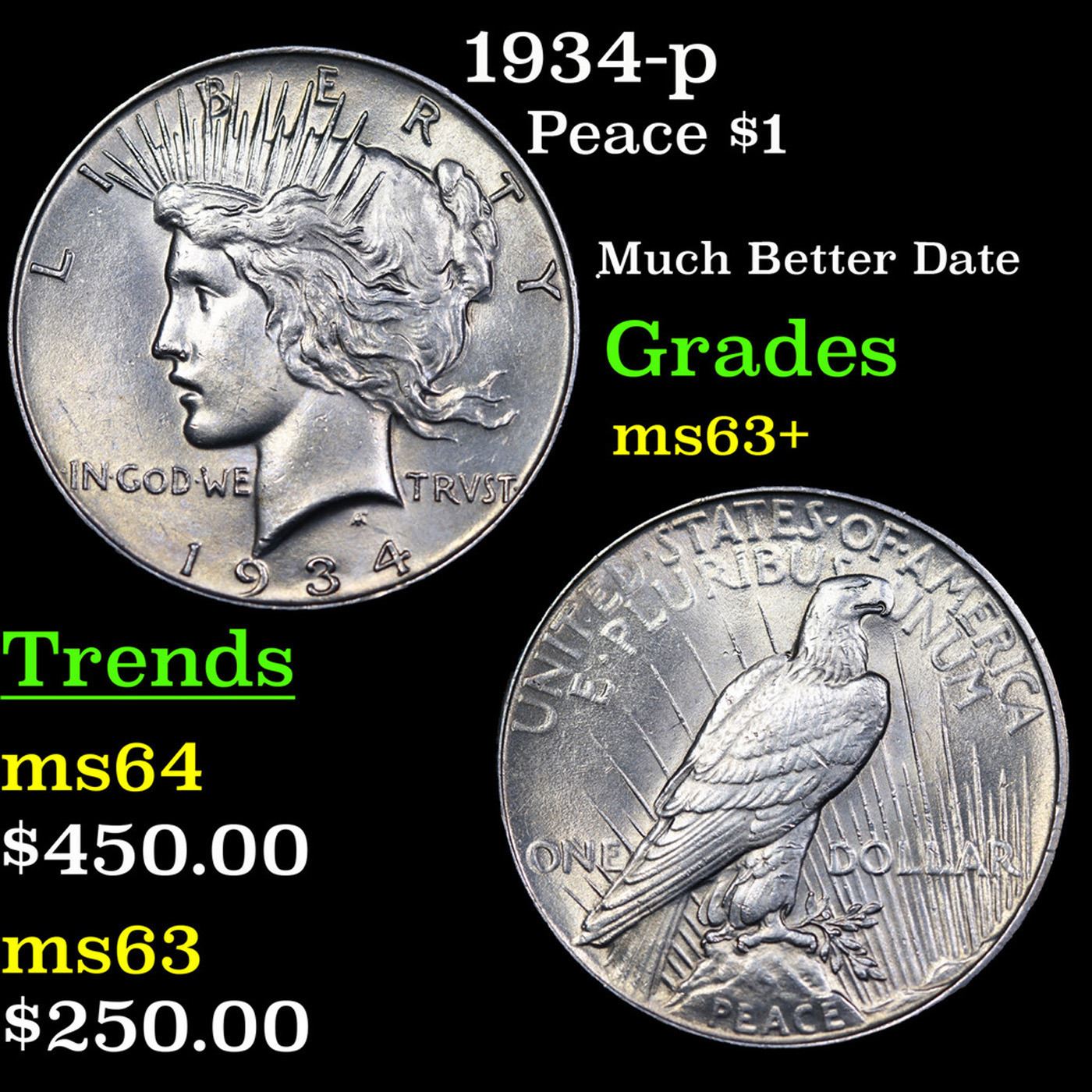 1934-p Peace Dollar $1 Grades Select+ Unc.