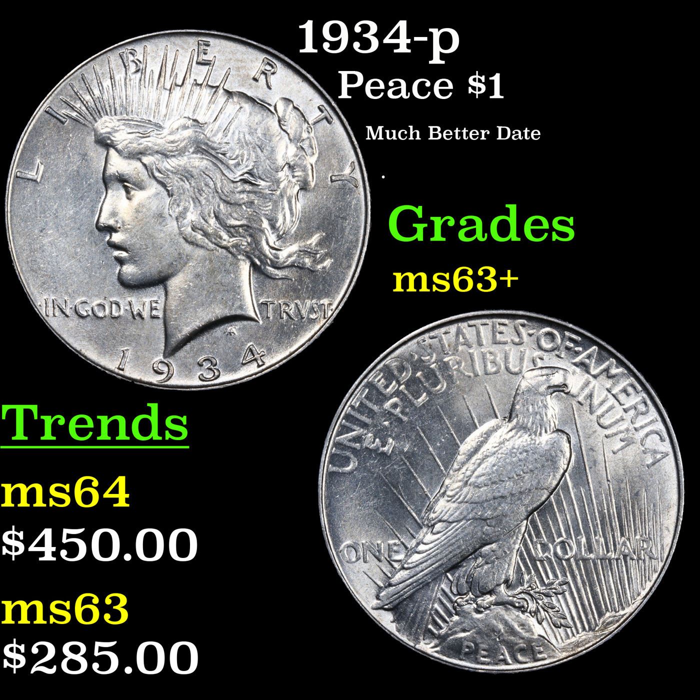 1934-p Peace Dollar $1 Grades Select+ Unc.