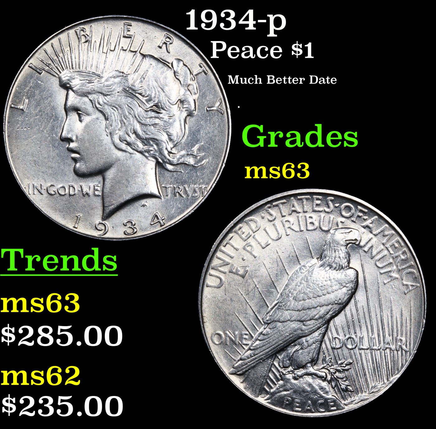 1934-p Peace Dollar $1 Grades Select Unc.