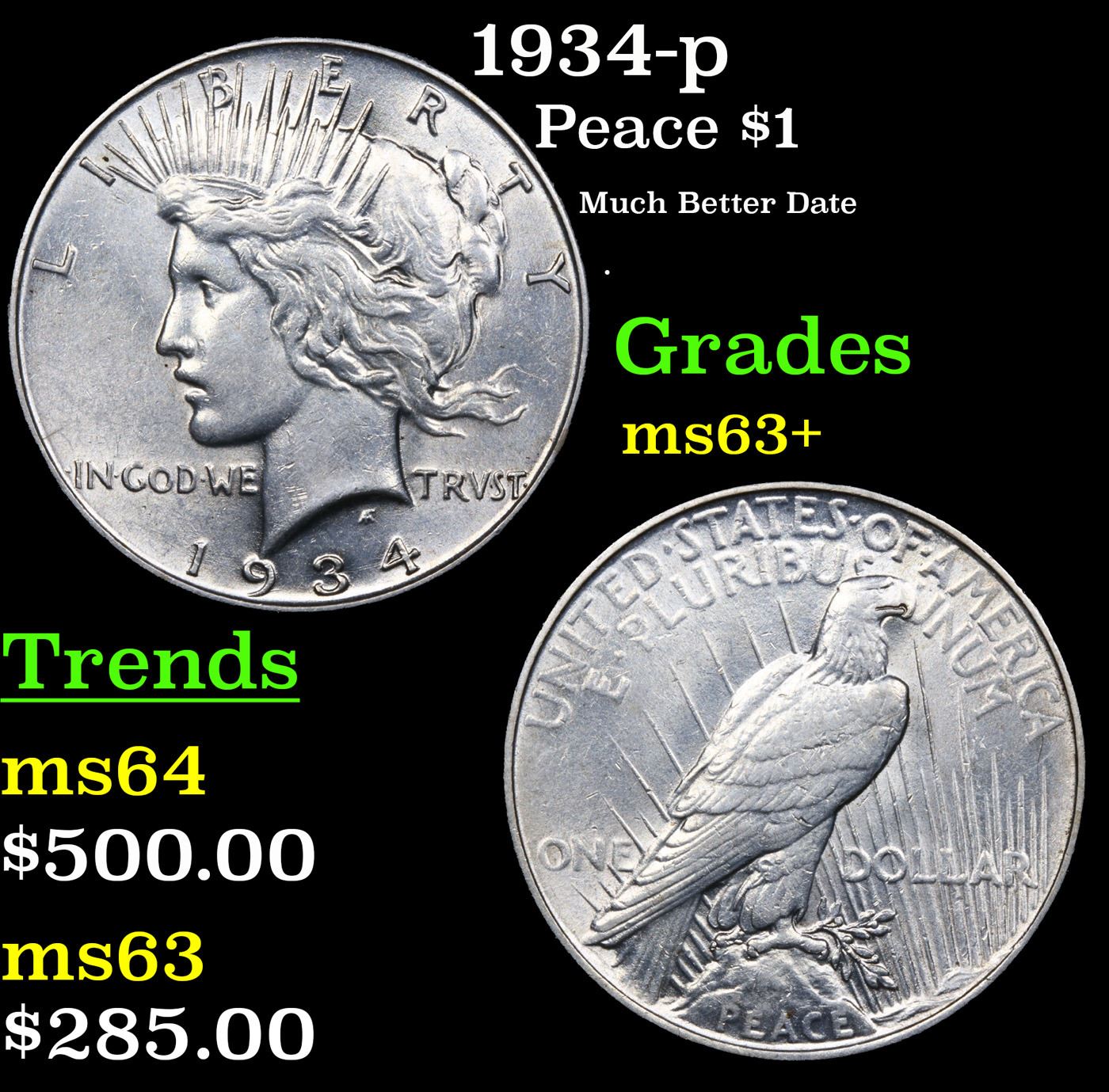 1934-p Peace Dollar $1 Grades Select+ Unc.