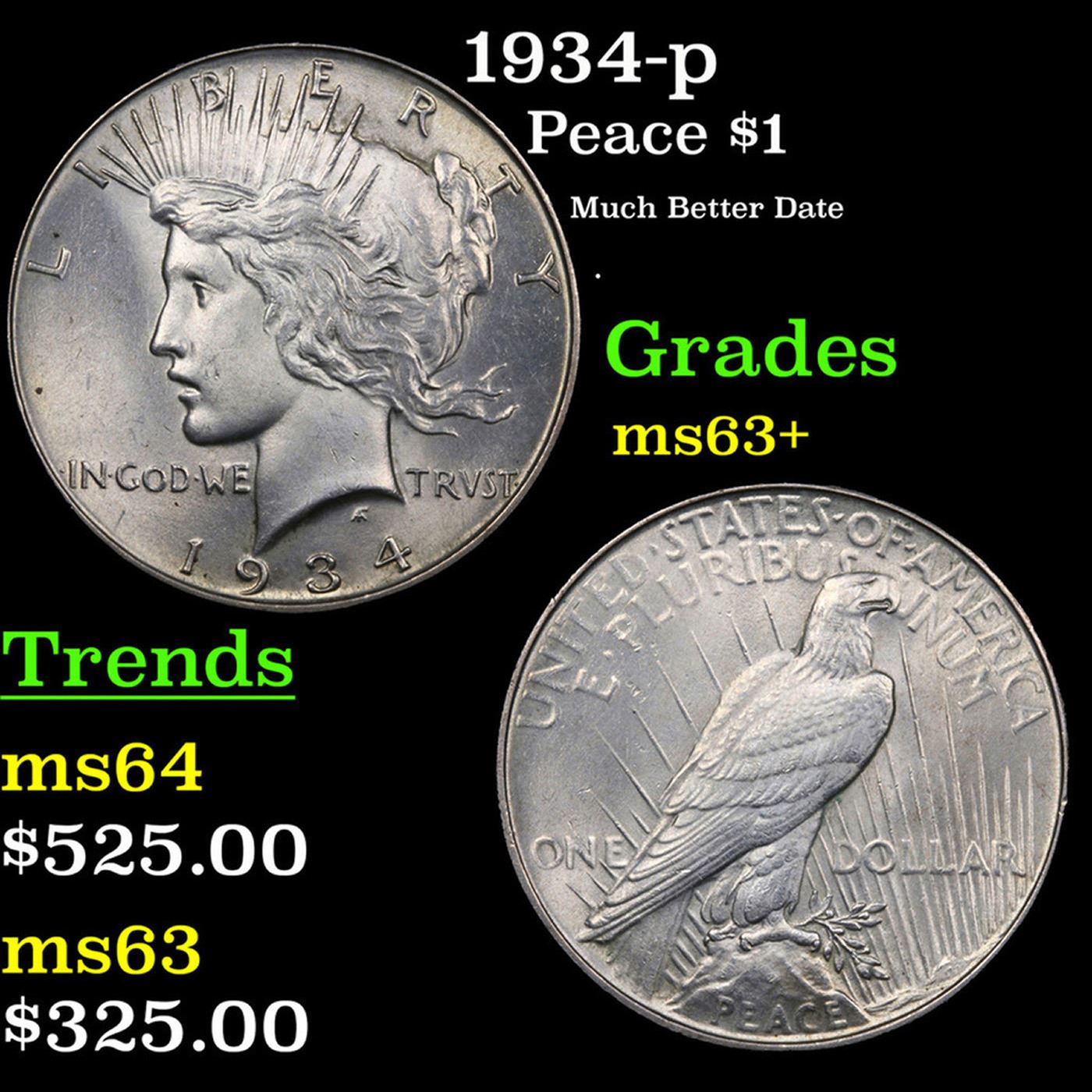 1934-p Peace Dollar $1 Grades Select+ Unc.