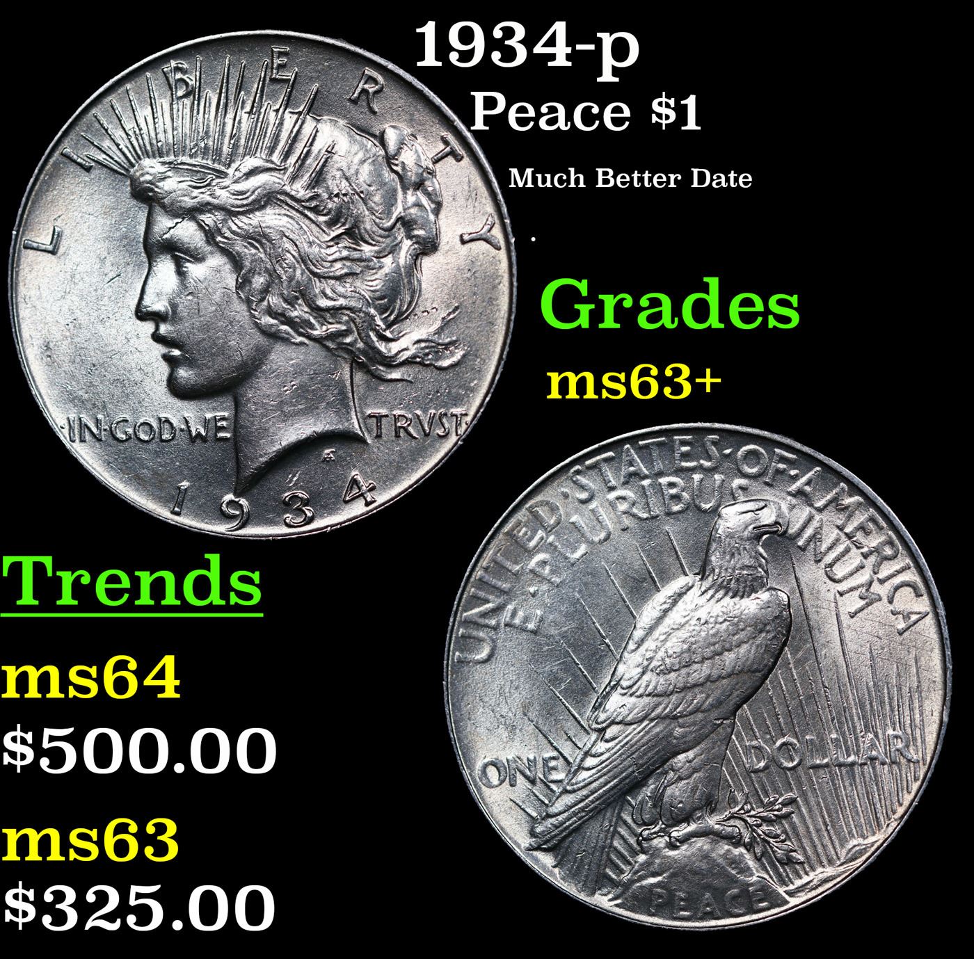 1934-p Peace Dollar $1 Grades Select+ Unc.