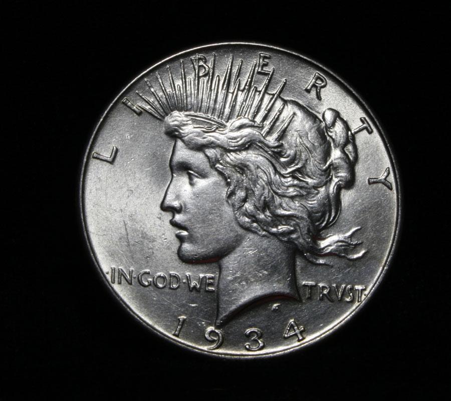 Blast white and Lustrous example. Well Struck. A very attractive example of this 1934 Peace Dollar. The first coin made in this series since the 1928 and the hiatus due to the Great Depression. Coin World's Coin Values lists ms63 at $225 and The Wholesale Greysheet lists ms63 at $180. Estimated Value $200
