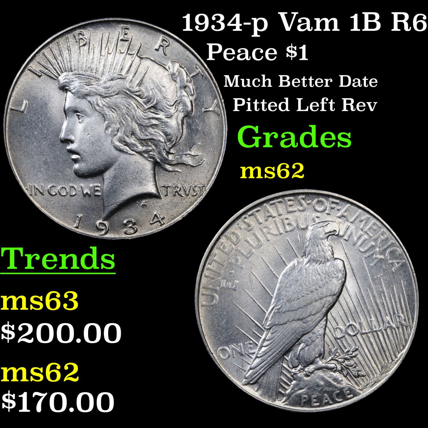 1934-p Vam 1B R6 Peace Dollar $1 Grades Select Unc.