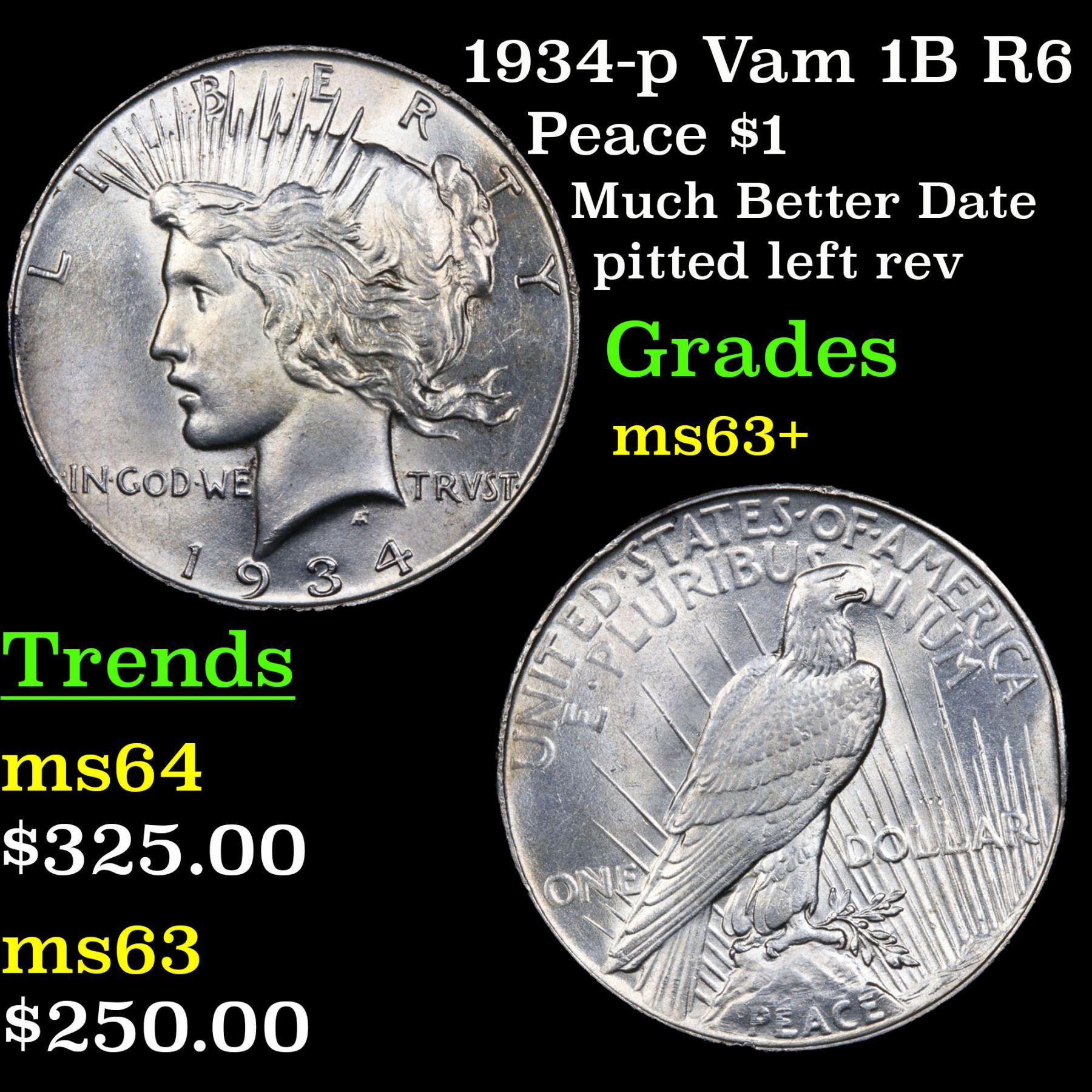 1934-p Vam 1B R6 Peace Dollar $1 Grades Select+ Unc.