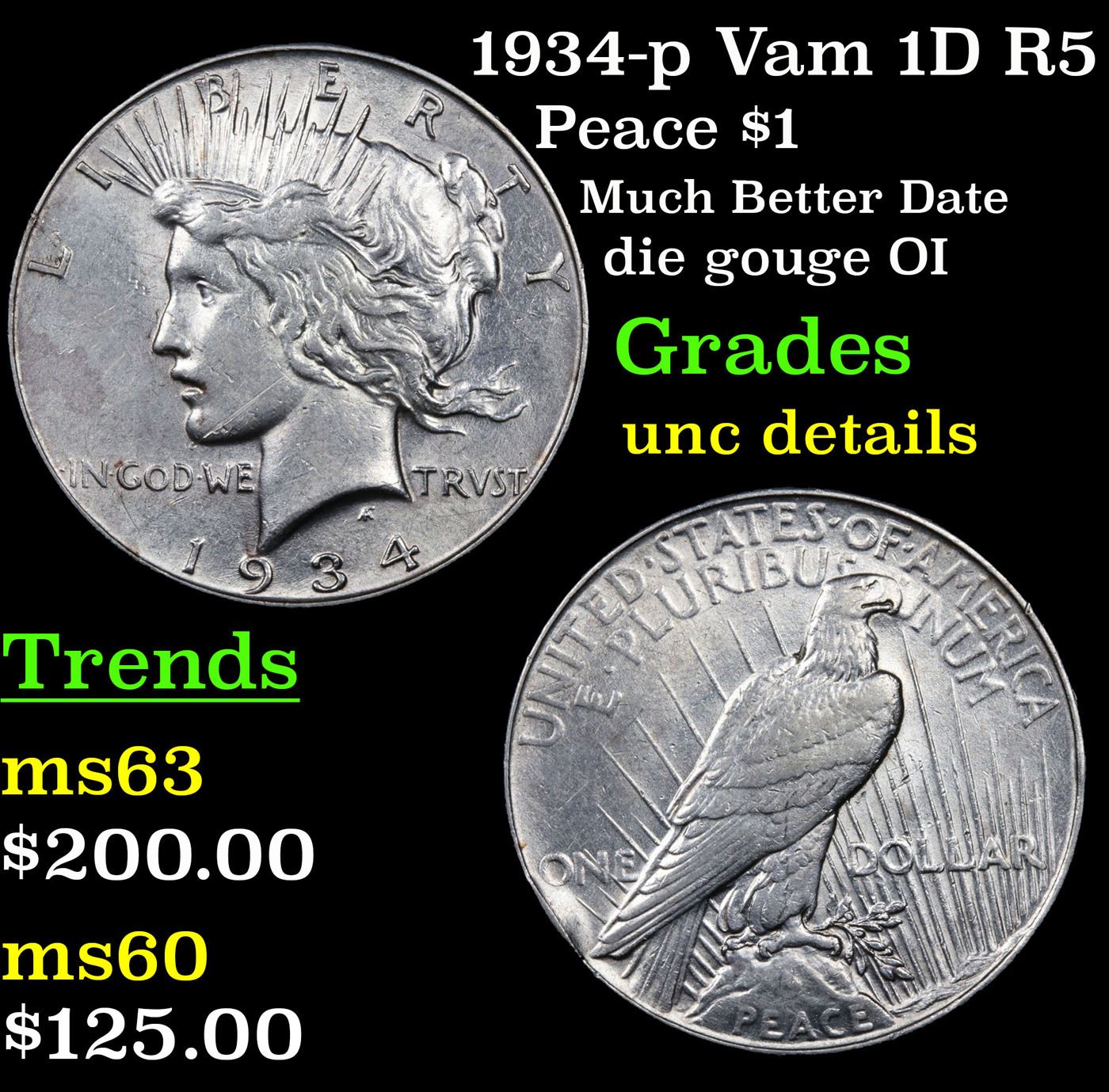 1934-p Vam 1D R5 Peace Dollar $1 Grades Unc Details.