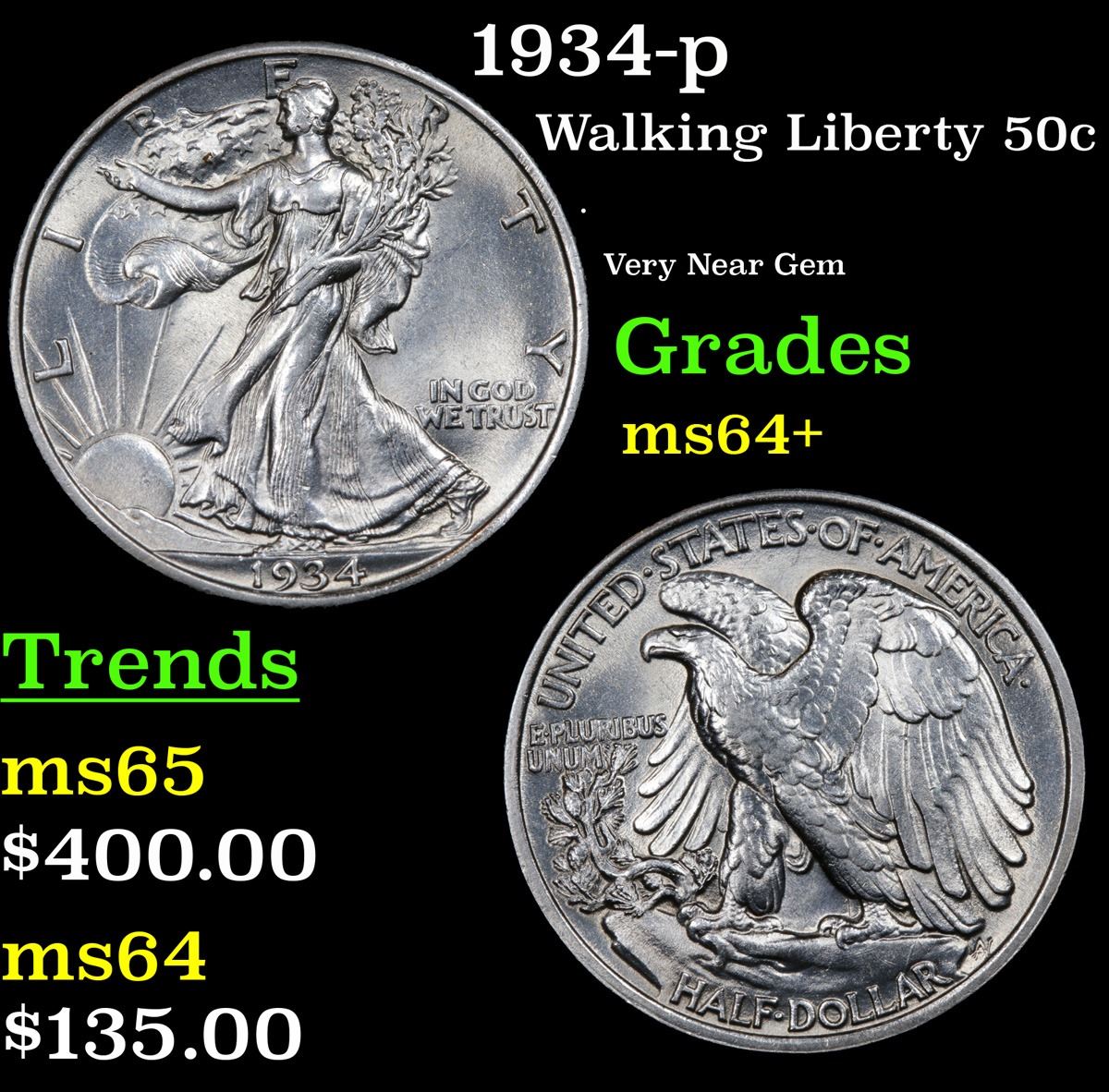 1934-p Walking Liberty Half Dollar 50c Grades Choice+ Unc.