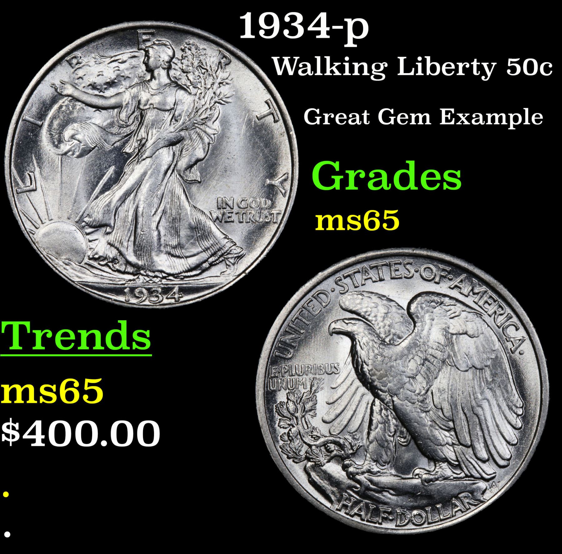1934-p Walking Liberty Half Dollar 50c Grades GEM Unc.