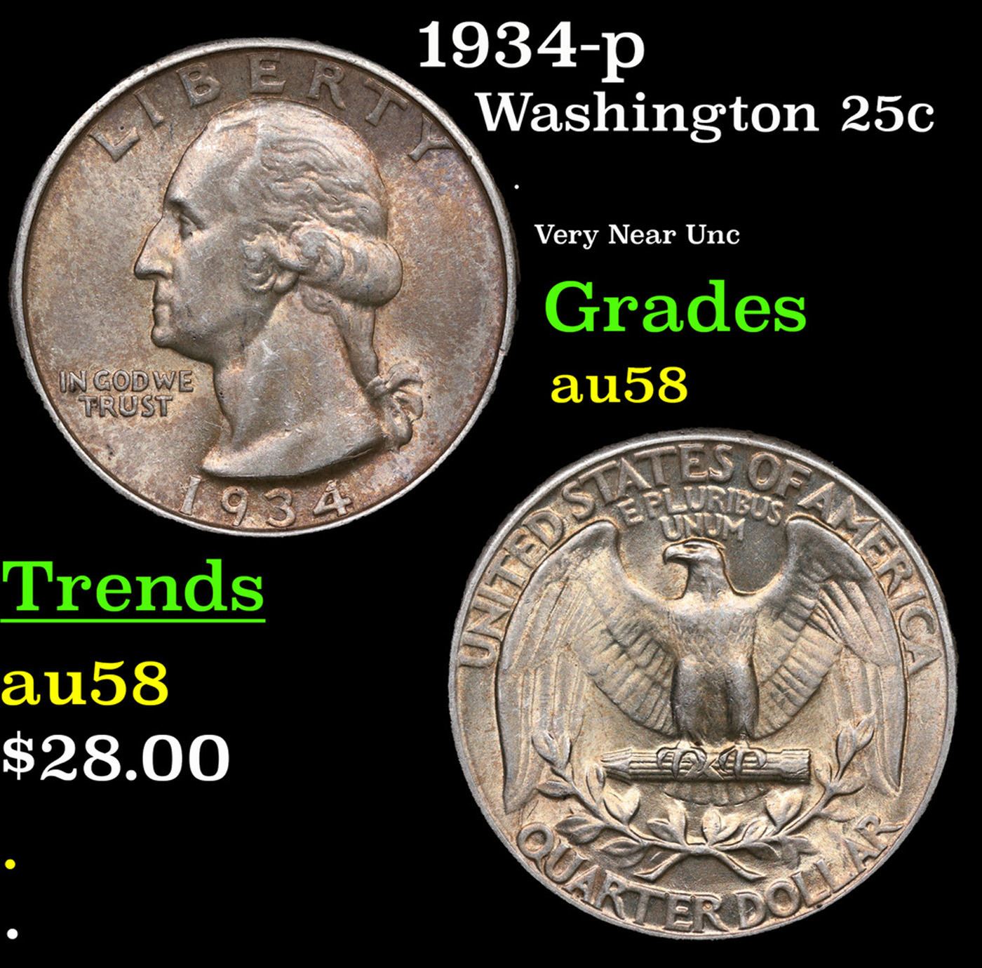 1934-p Washington Quarter 25c Grades Choice AU/BU Slider.