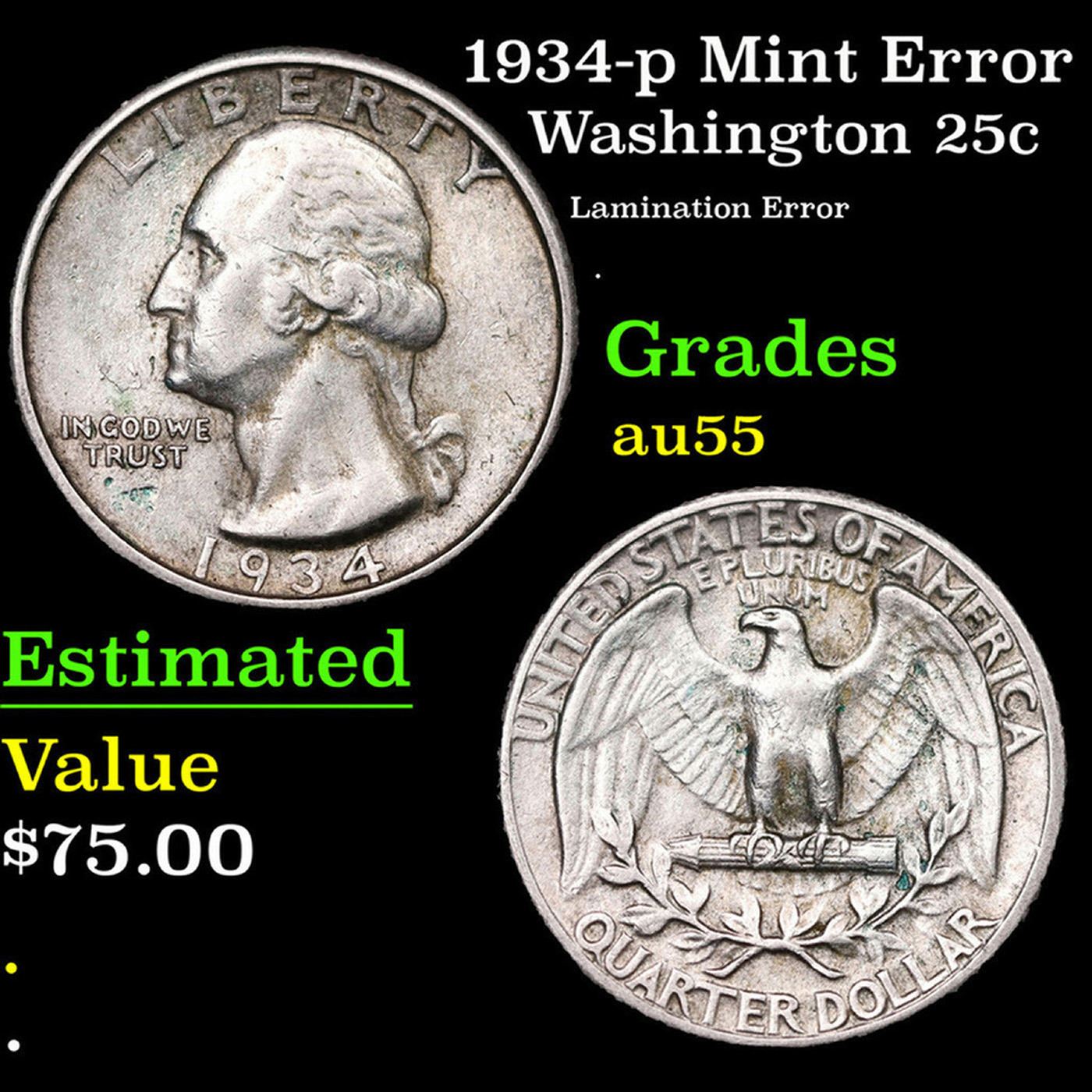 1934-p Mint Error Washington Quarter 25c Grades Choice AU.