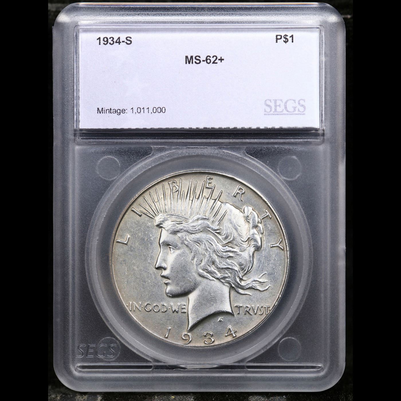 1934-s Peace Dollar $1 Grades Select Unc By SEGS. A Key Date's Pick, Bid to Win, Don't let it get Away, you might not find its equal Coin