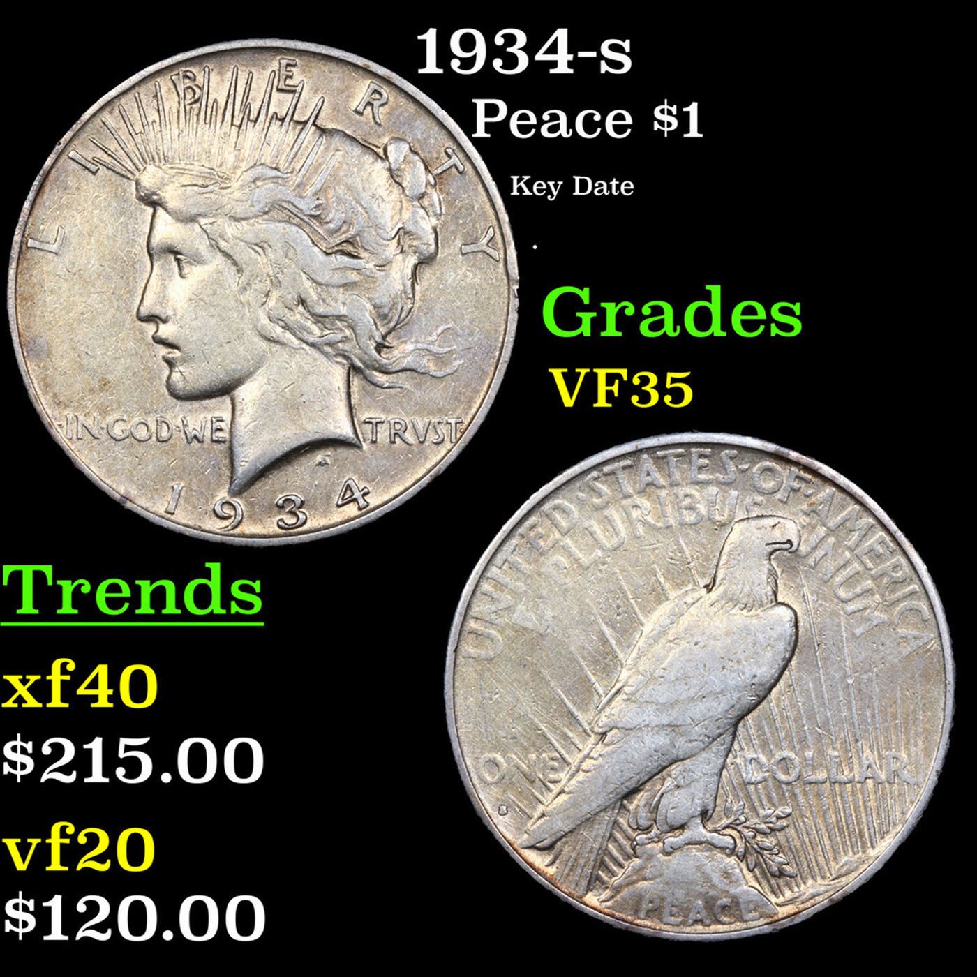 1934-s Peace Dollar $1 Grades vf++.