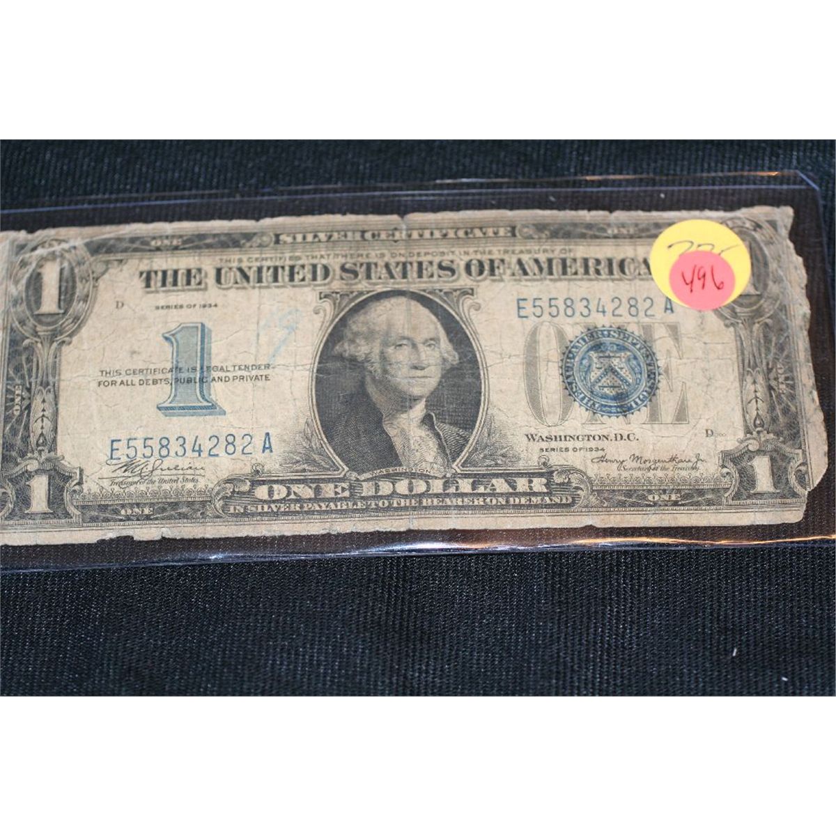 1934 silver certificate Blue Stamp #E55834282A funny back
