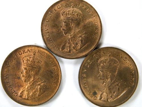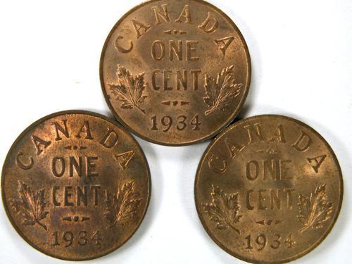 1934 three pieces, Uncirculated to Choice Uncirculated and 60% to 80% red