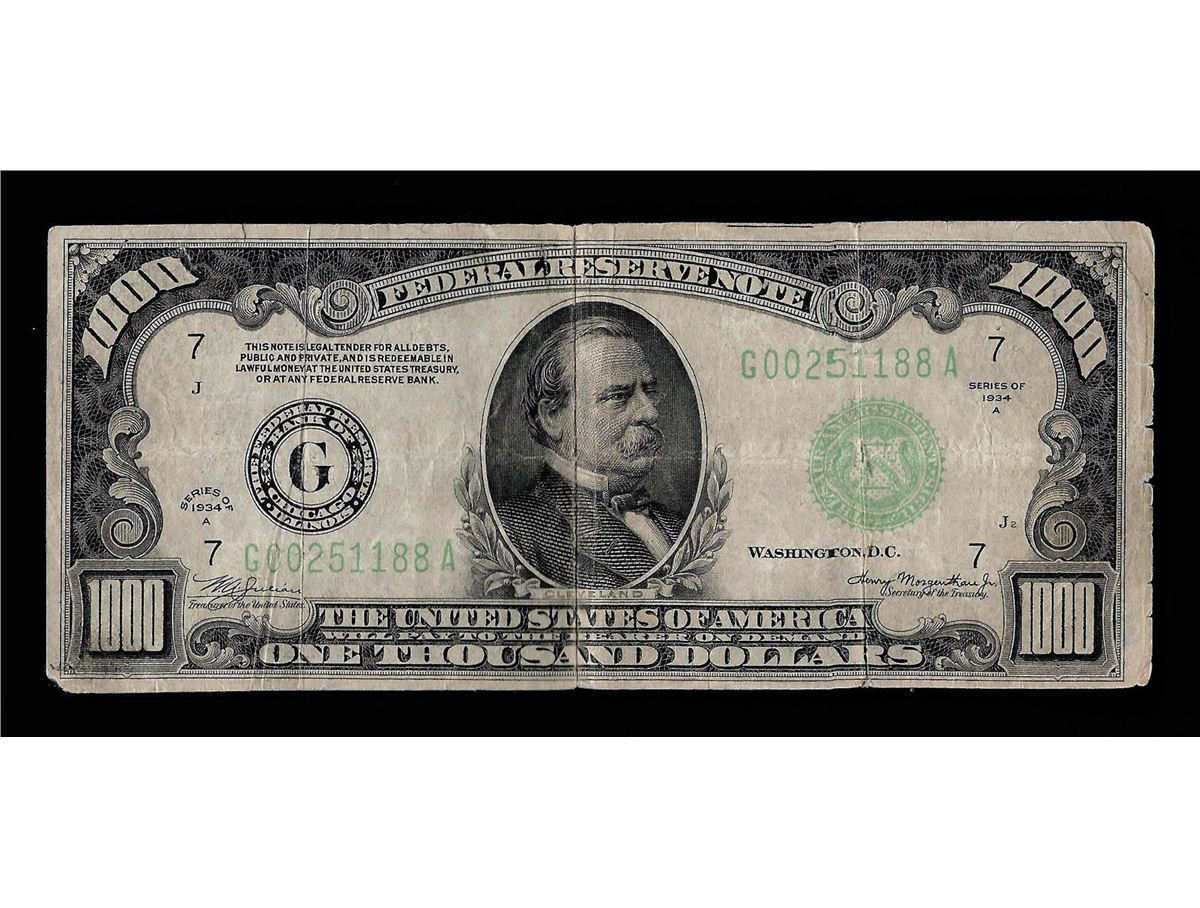 One 1934A $1,000 Federal Reserve Note Chicago - Pinholes.