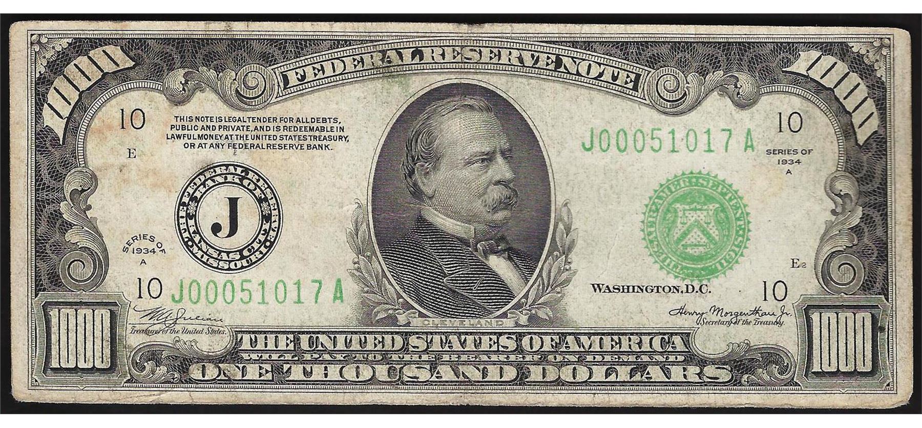 1934A $1,000 Federal Reserve Note Kansas City