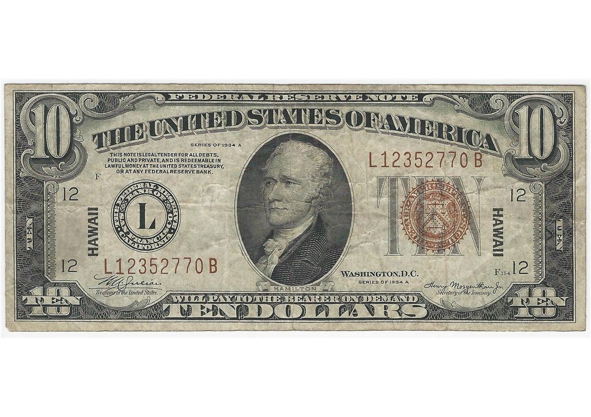 One 1934A $10 Federal Reserve Emergency Hawaii Note.