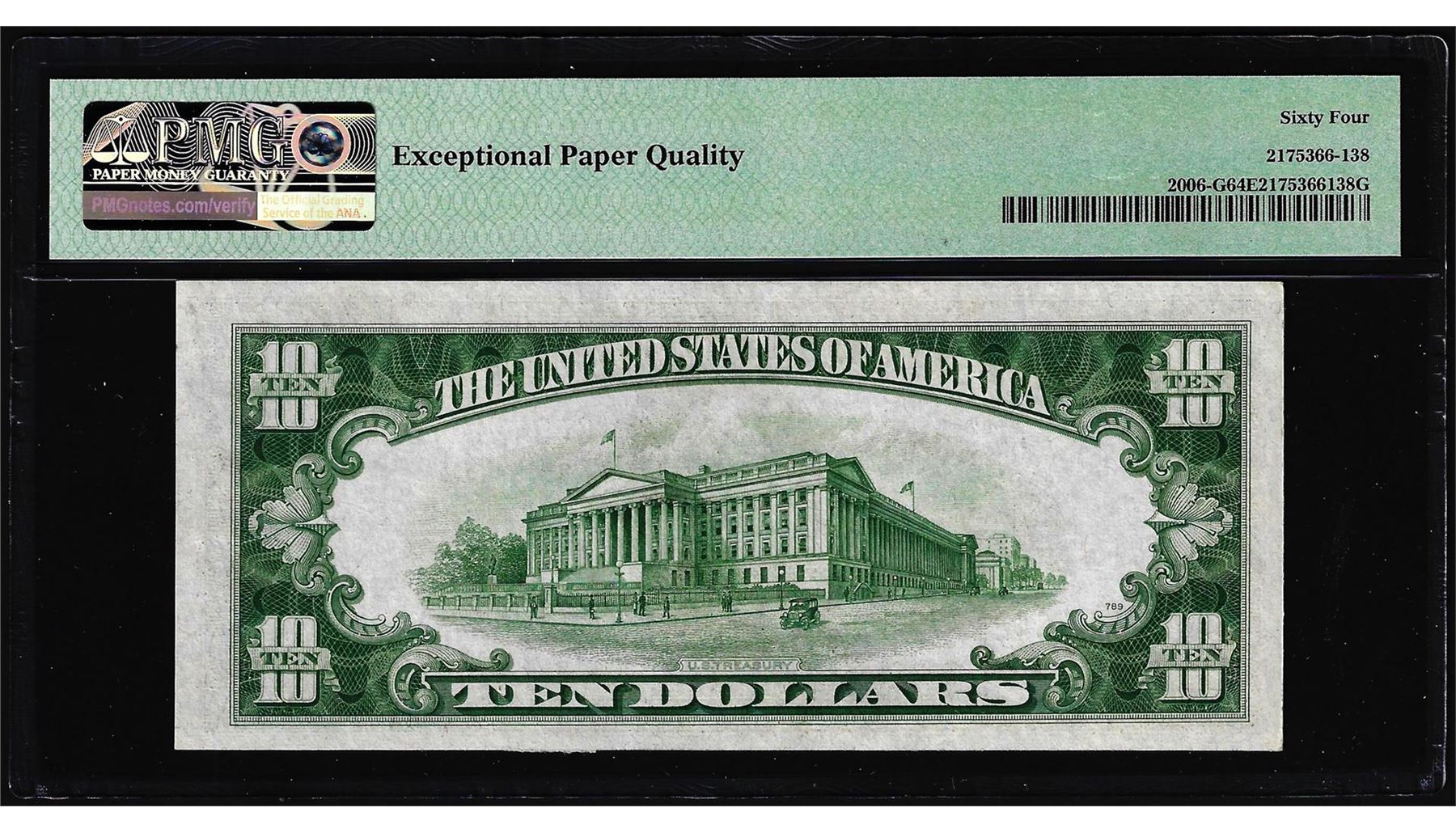 1934A $10 Federal Reserve Note Chicago Fr.2006-G PMG Choice Uncirculated 64EPQ