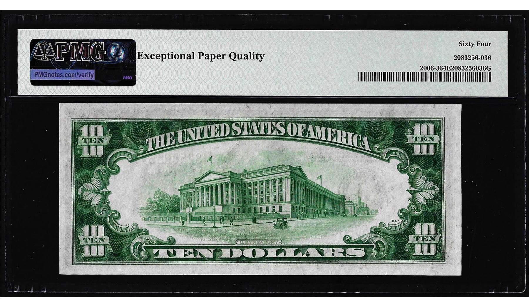 1934A $10 Federal Reserve Note Kansas City Fr.2006-J PMG Choice Uncirculated 64EPQ