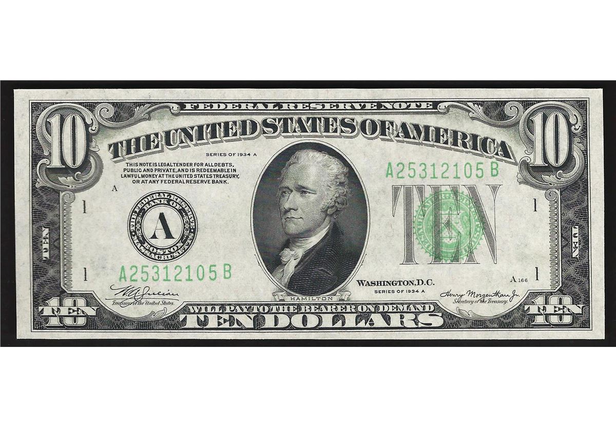 One 1934A $10 Federal Reserve Note.