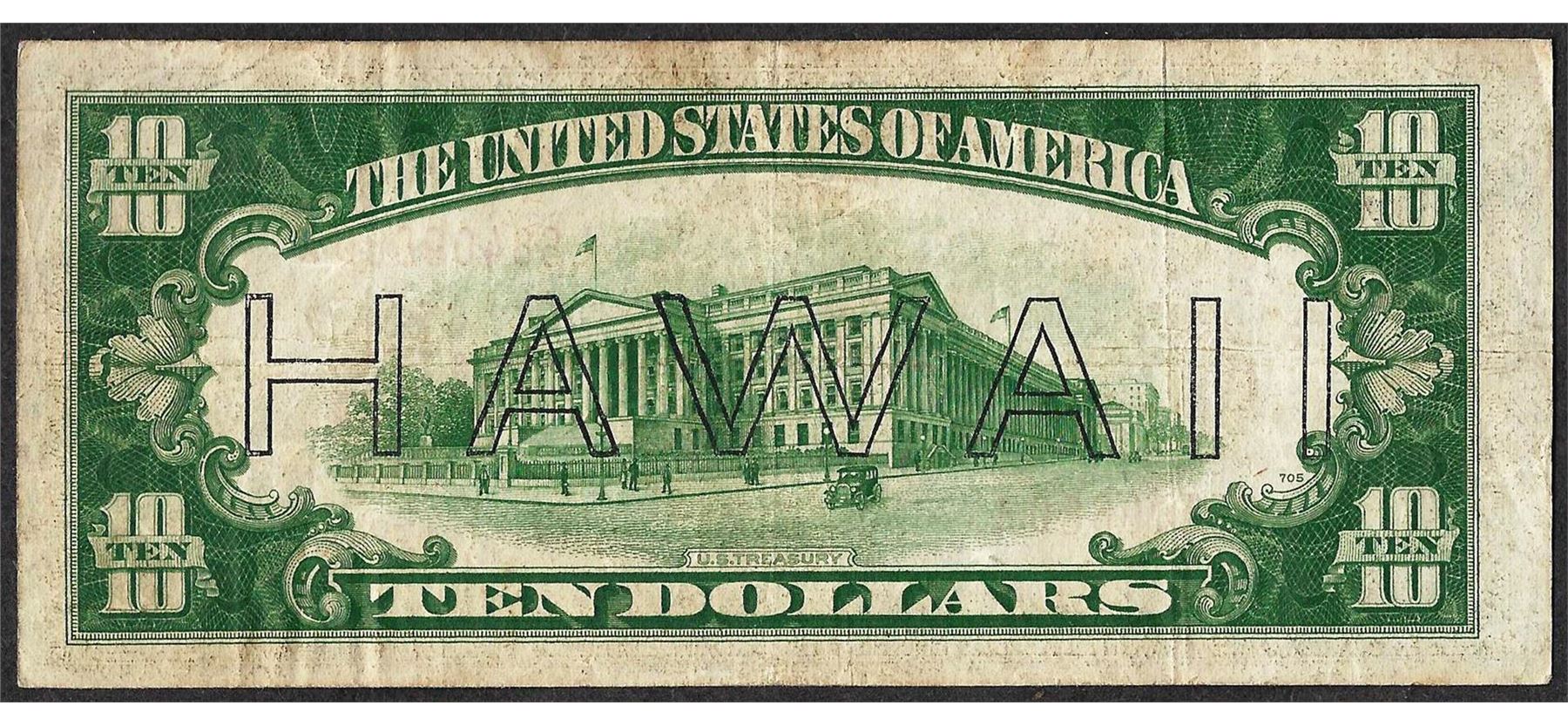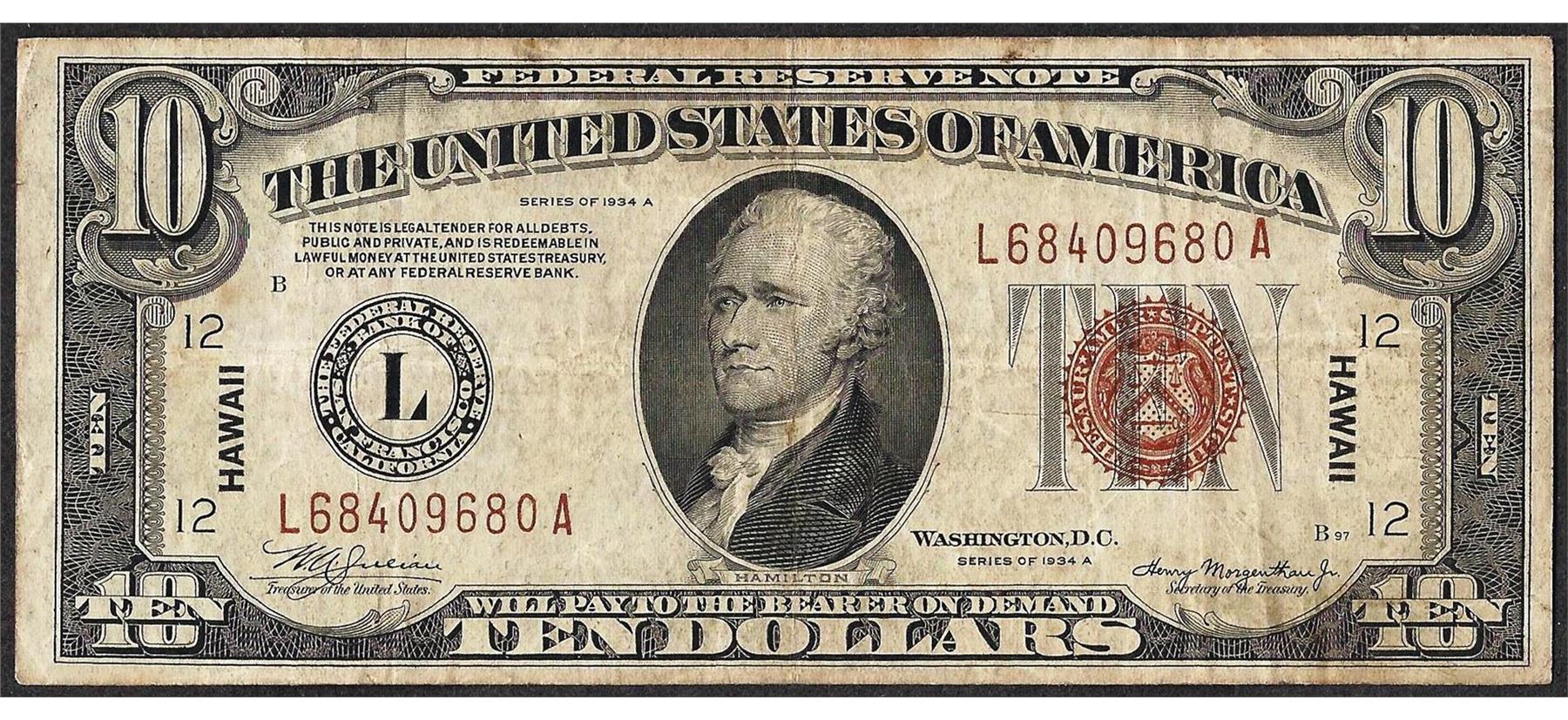One 1934A $10 Federal Reserve WWII Emergency Hawaii Note.