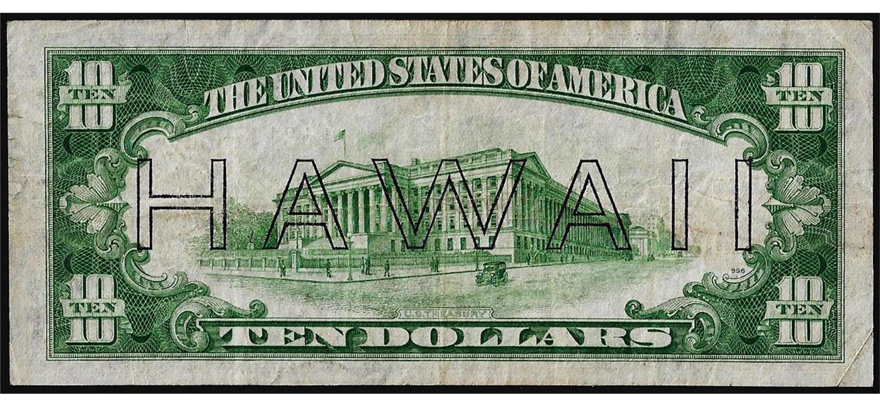 One 1934A $10 Federal Reserve WWII Emergency Hawaii Note.